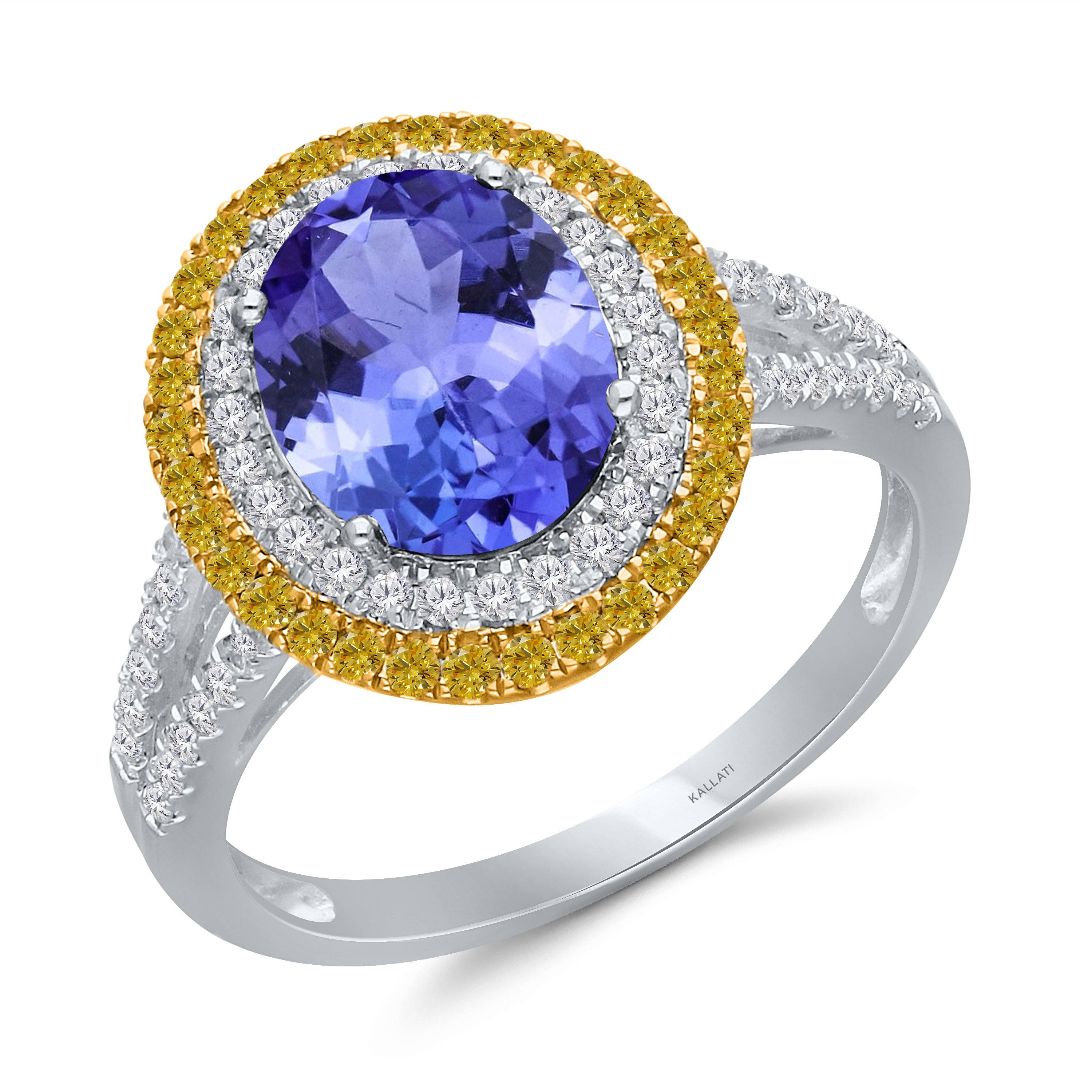 14K WHITE GOLD TANZANITE & YELLOW FANCY WITH WHITE DIAMOND RING