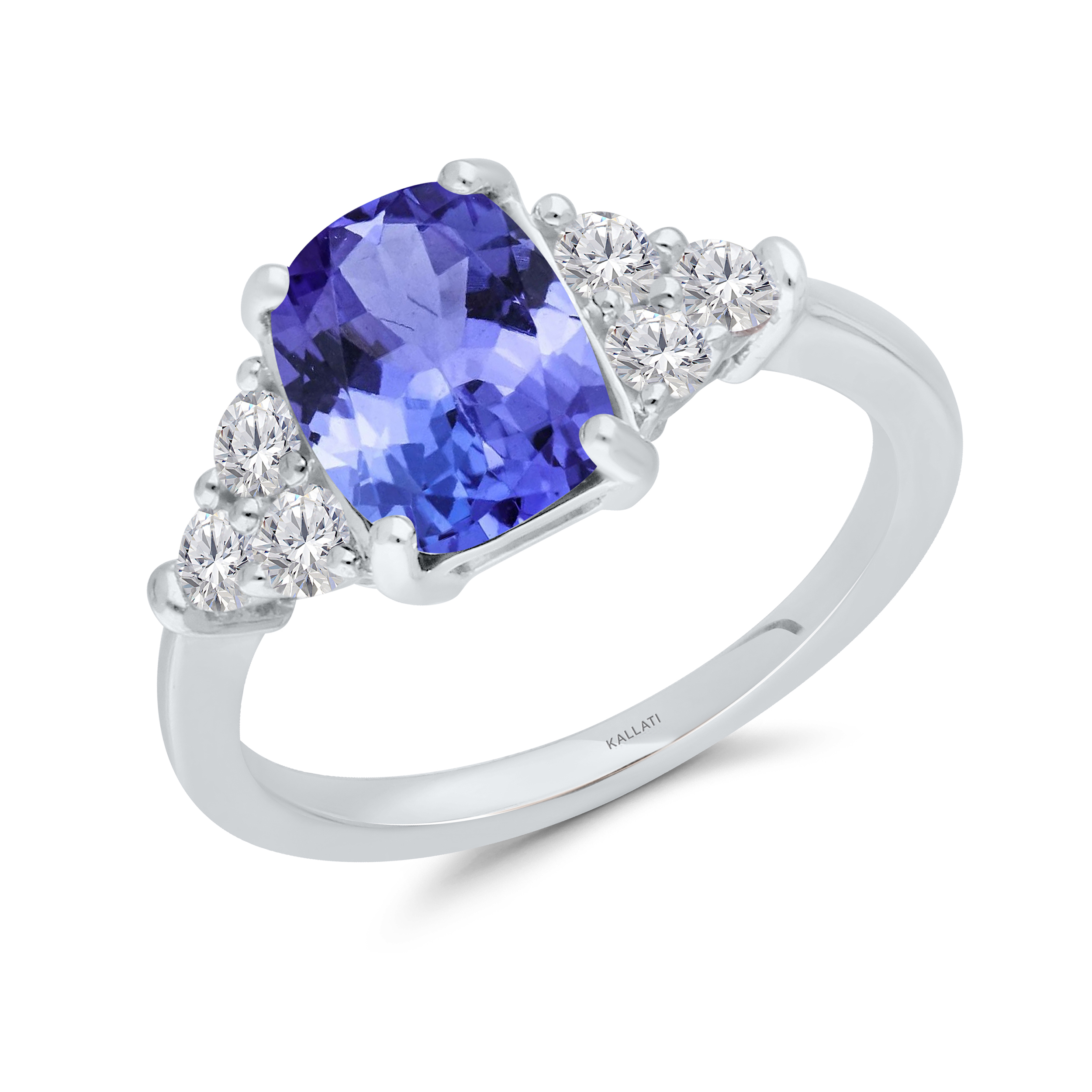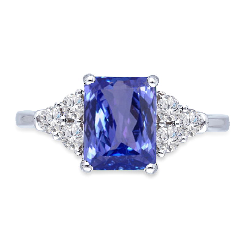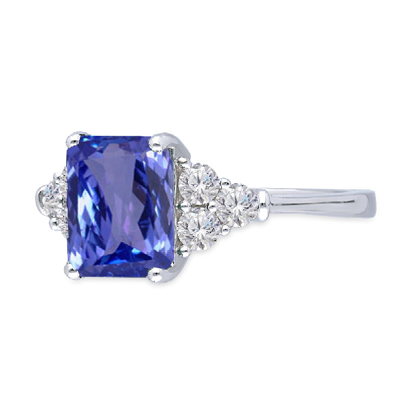 WHITE GOLD SQ TANZANITE WHITE DIA RING