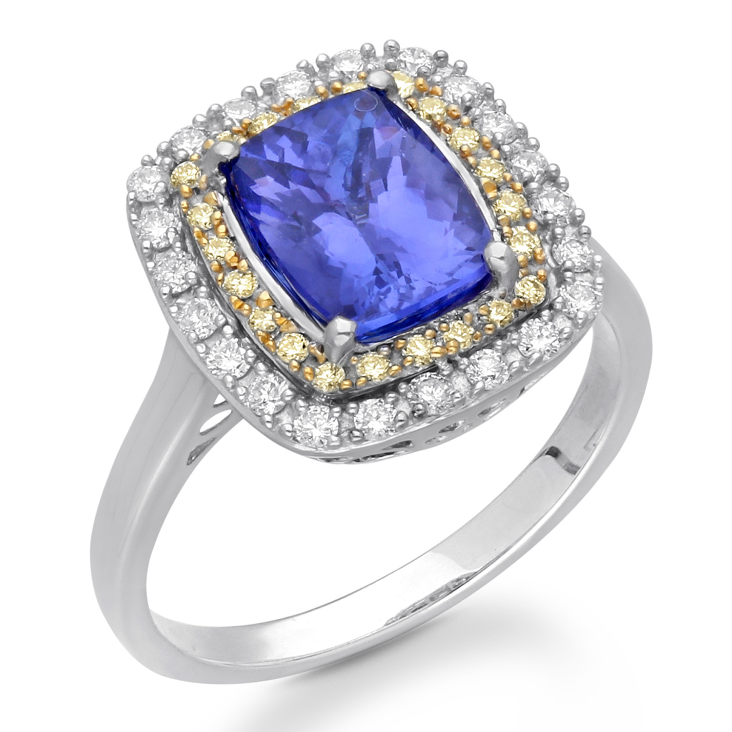 14K WHITE GOLD YELLOW & TANZANITE DIAMON
