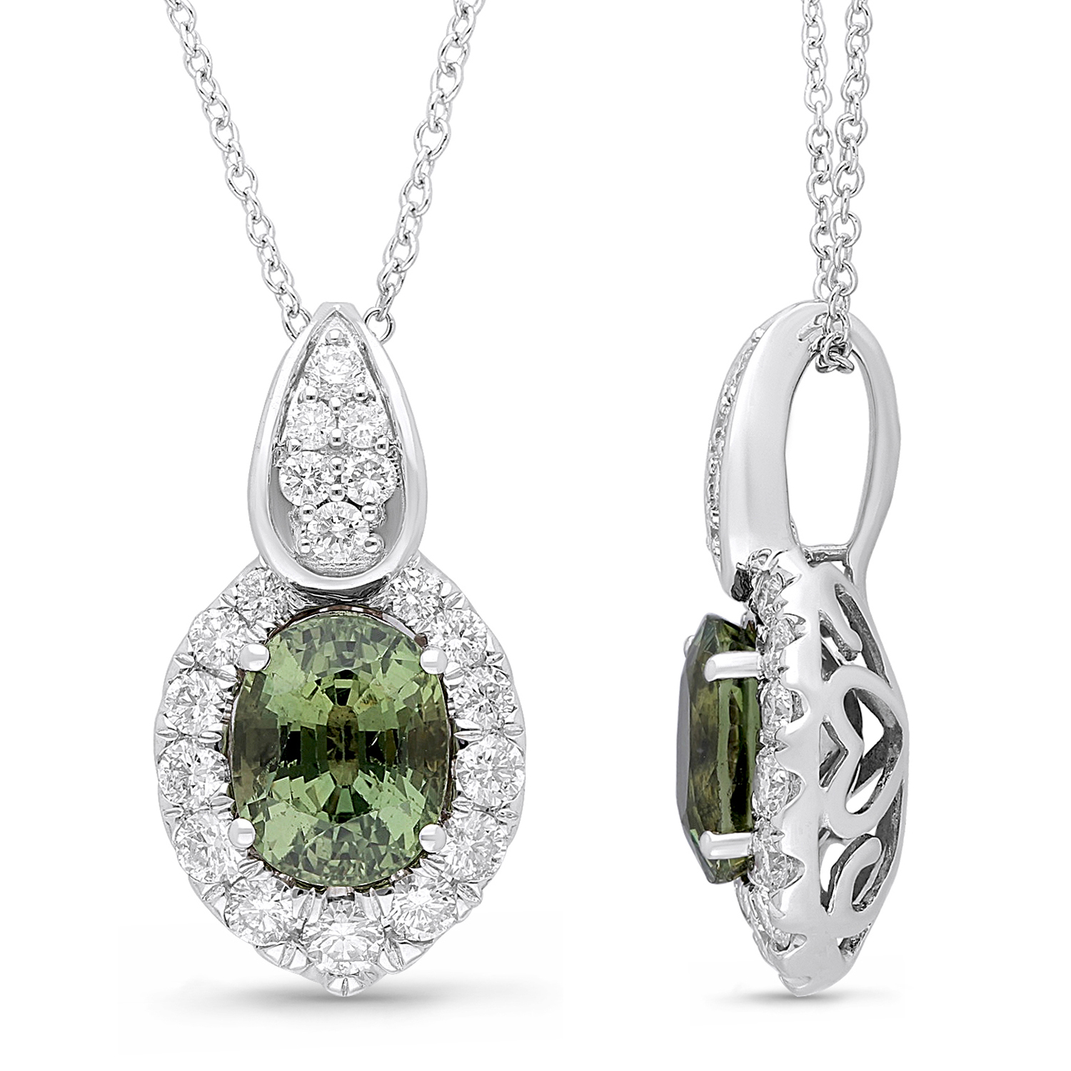 14K YELLOW GOLD NON HEAT TANZANITE & WHITE DIAMOND FASHION PENDANT
