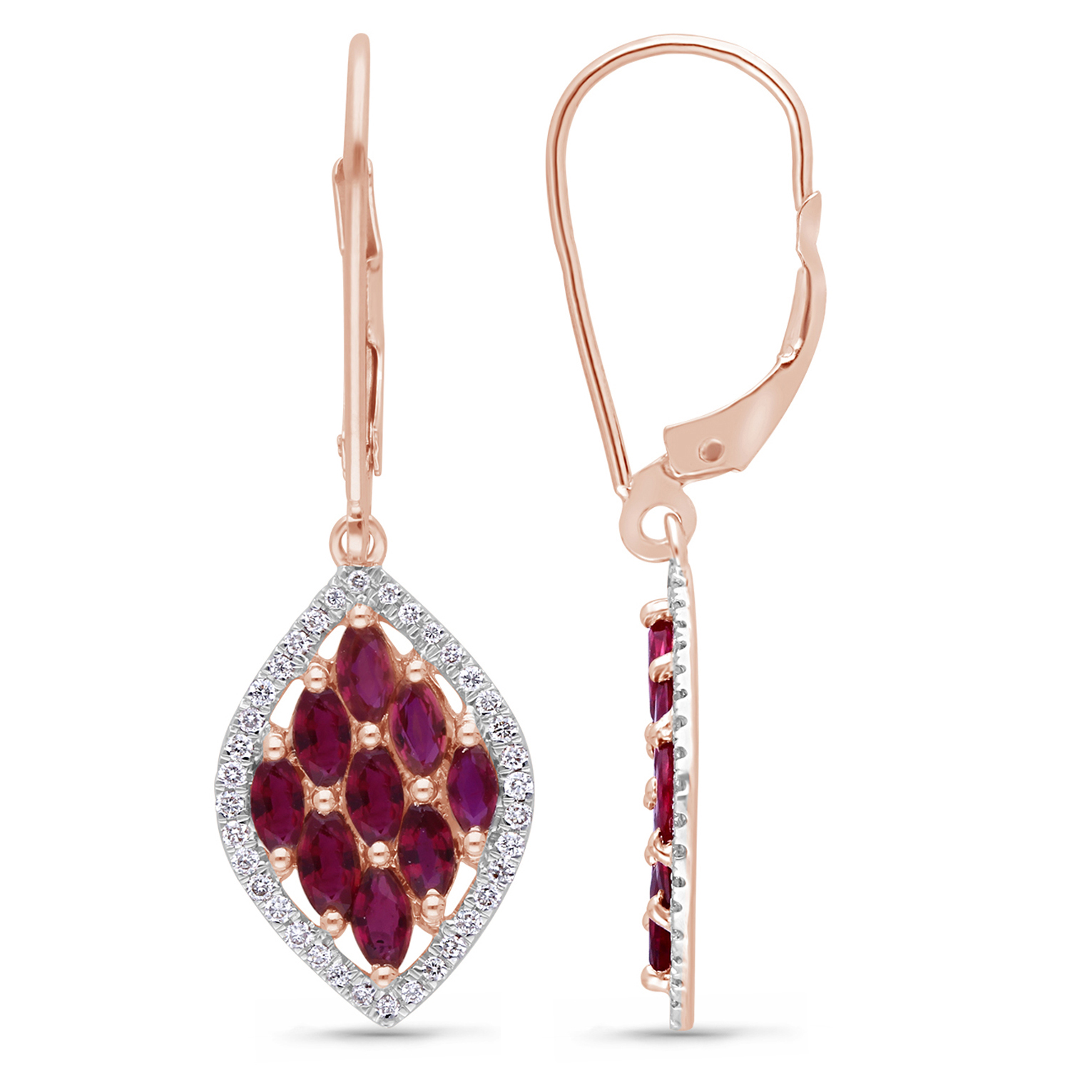 14K ROSE GOLD RUBY & WHITE DIA EARRING