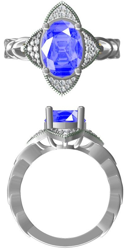 14K ROSE GOLD TANZANITE WITH WHITE DIAMOND FASHION RING