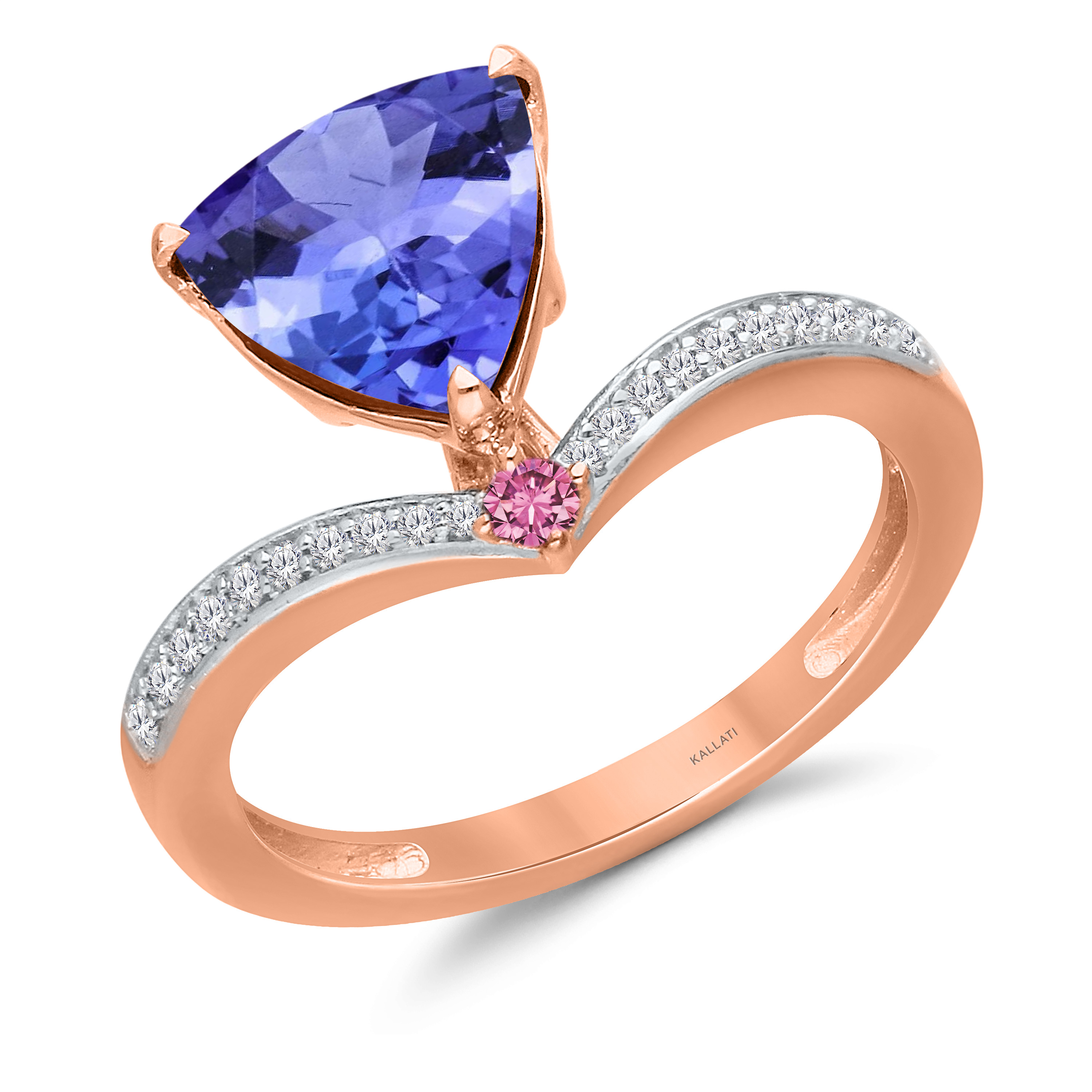 14K ROSE GOLD TANZANITE WITH PINK SAPPHIRE & WHITE