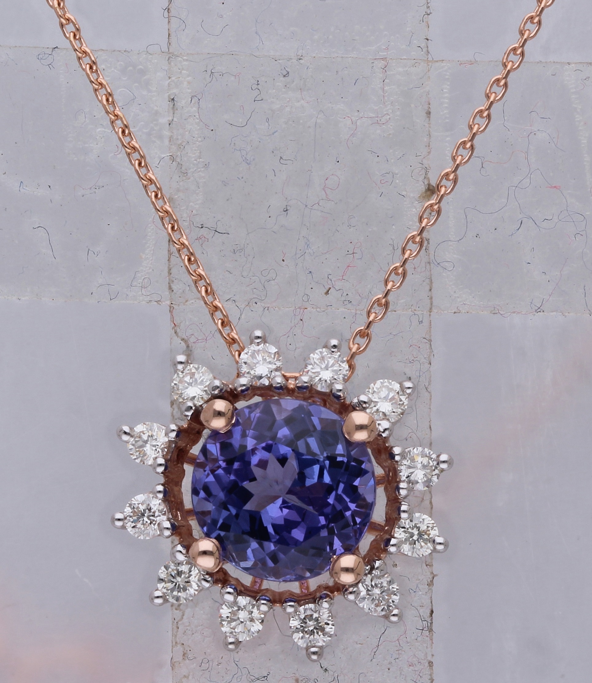 14K YELLOW GOLD TANZANITE & WHITE DIAMOND FASHION PENDANT