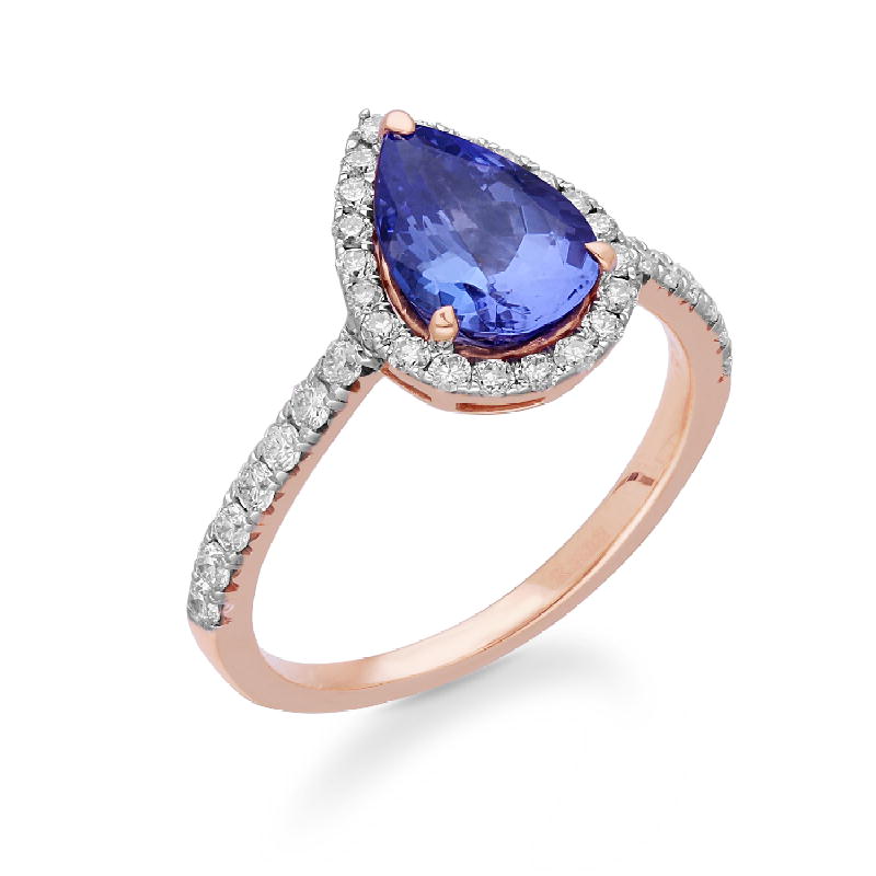 ROSE GOLD TANZANITE WHITE DIAMOND RING