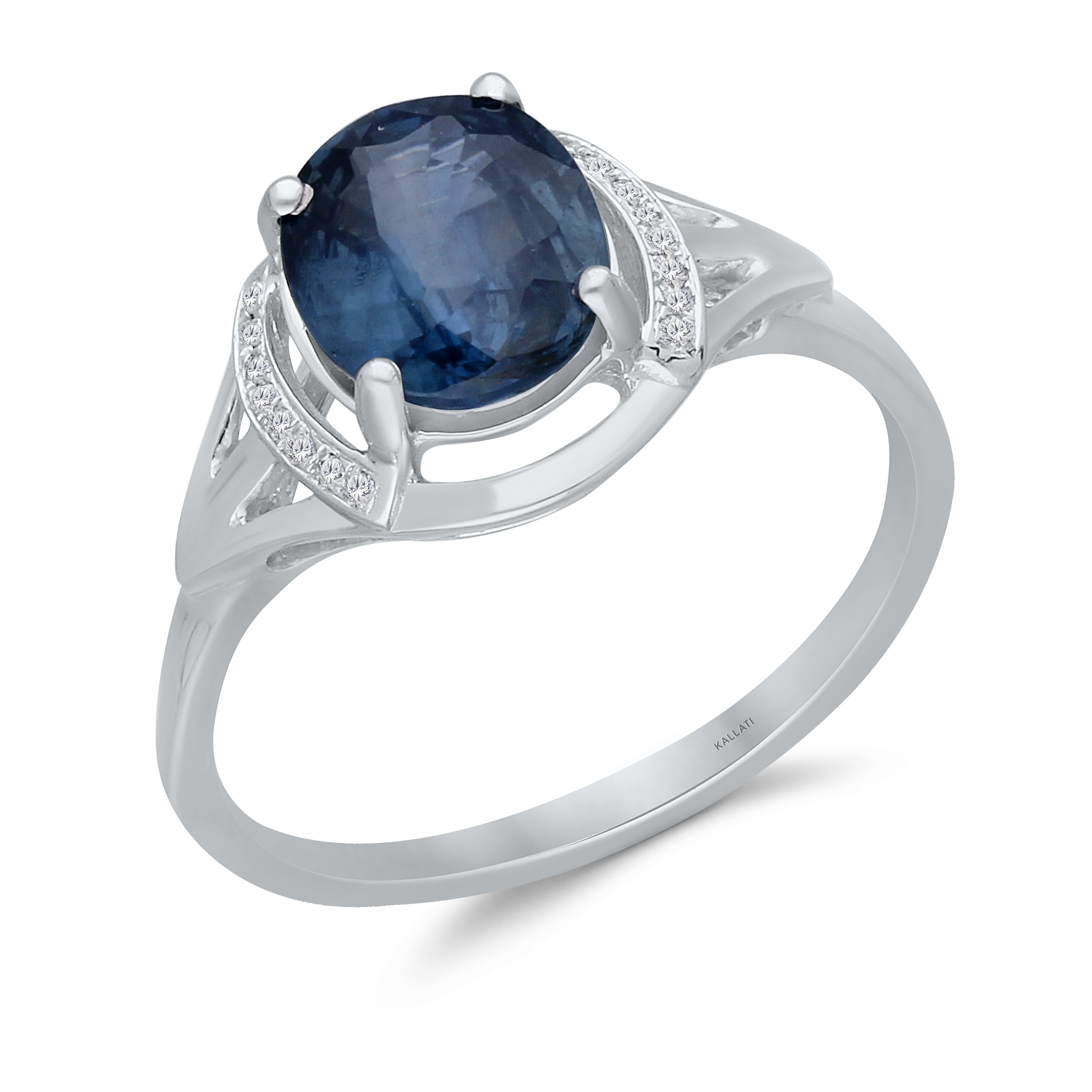 14K WHITE GOLD MULTI SAPPHIRE & WHITE DIAMOND FASHION RING
