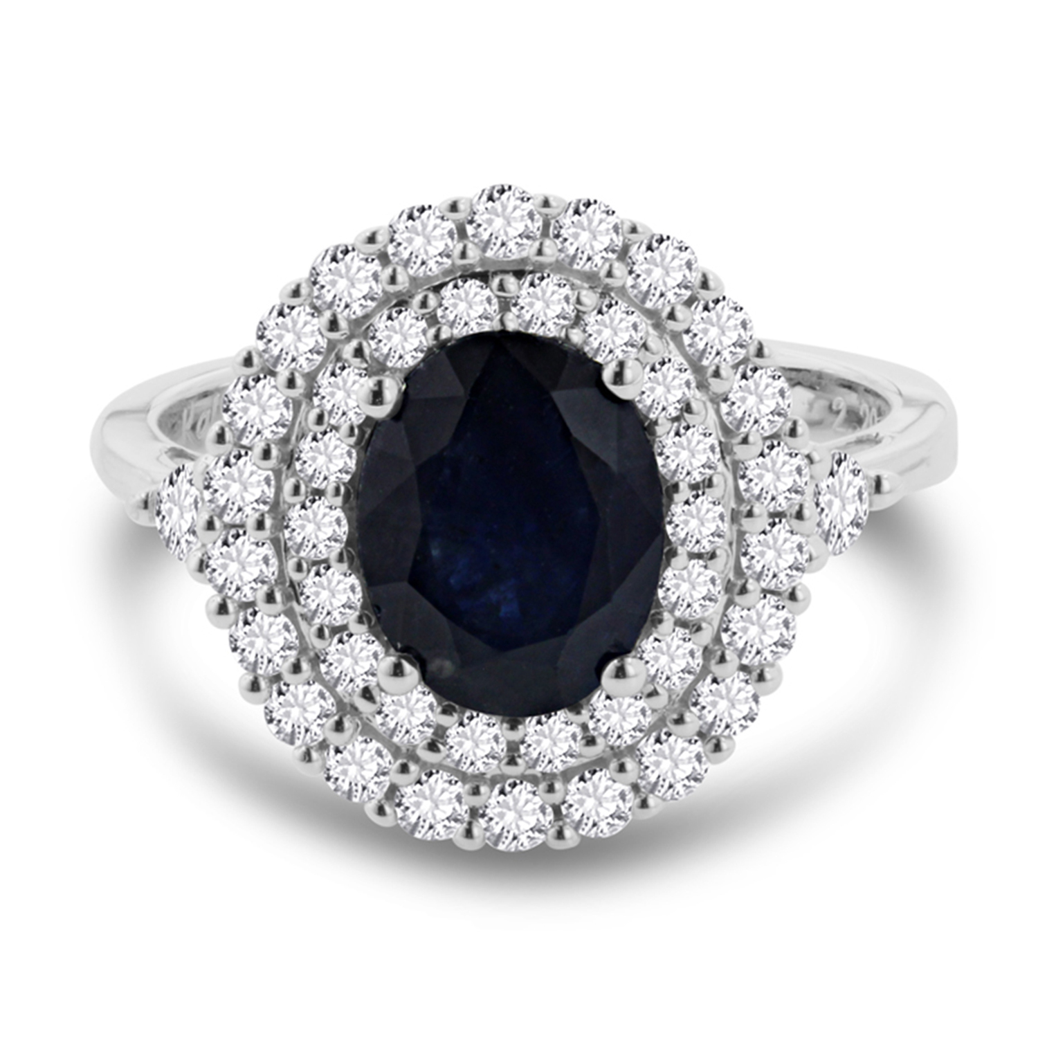 WHITE GOLD SI OVEL SAPPHIRE DIAMOND RING
