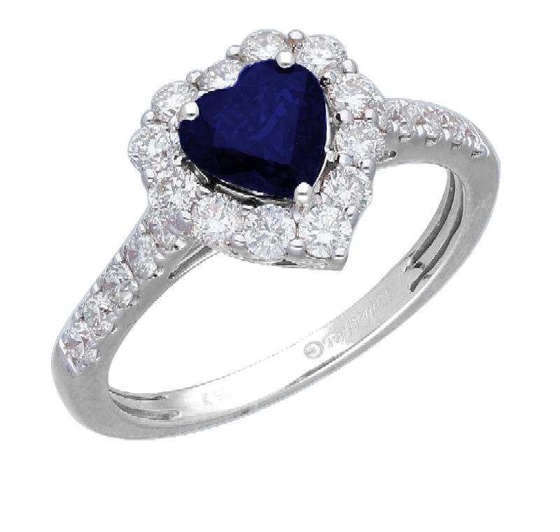 14K WHITE GOLD CEYLON SAPPHIRE & DIA RIN