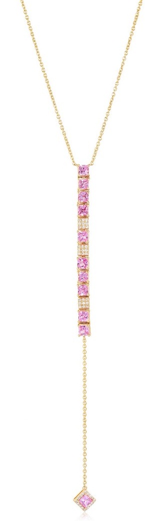 14K YELLOW GOLD PINK SAPPHIRE WITH WHITE DIAMOND FASHION NECKLACE
