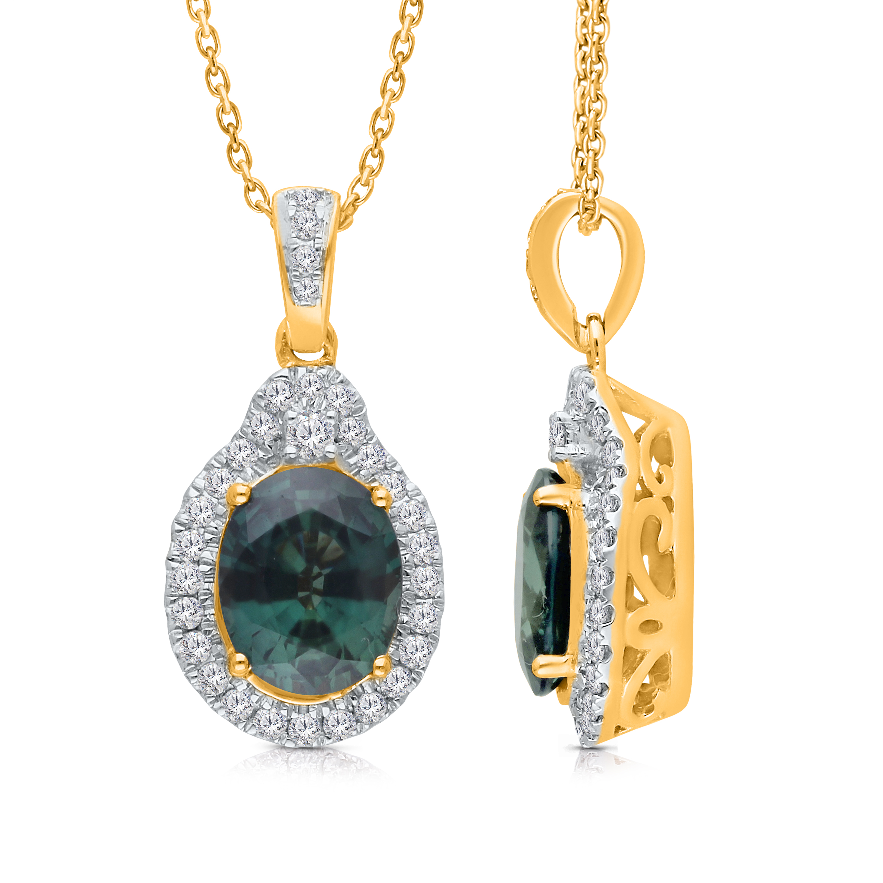 14K YELLOW GOLD MULTI SAPPHIRE & WHITE DIAMOND FASHION PENDANT