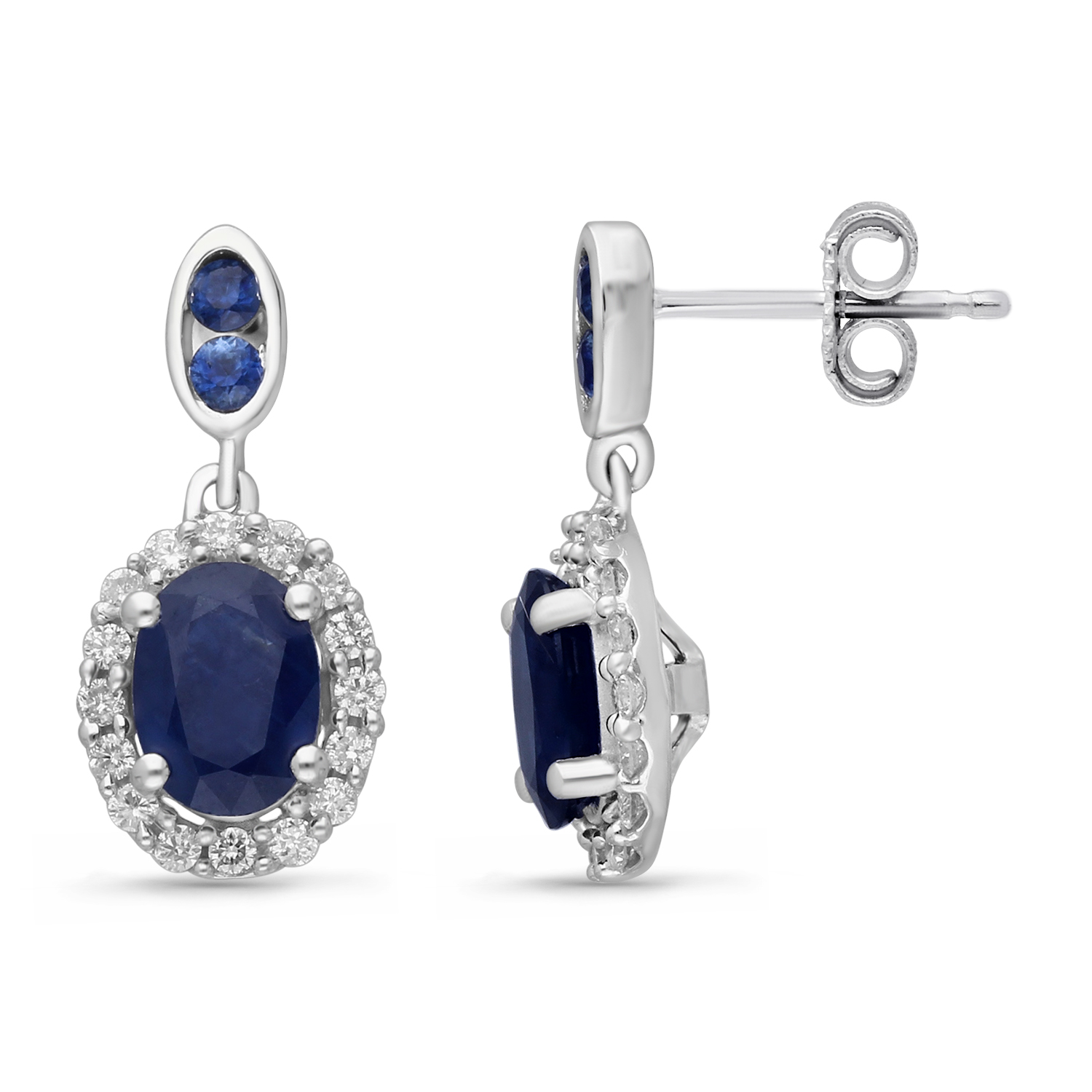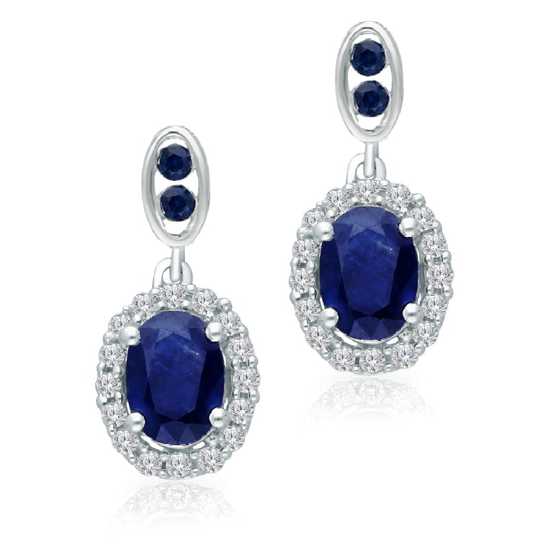 14K WHITE GOLD SAPPHIRE & WHITE DIAMOND
