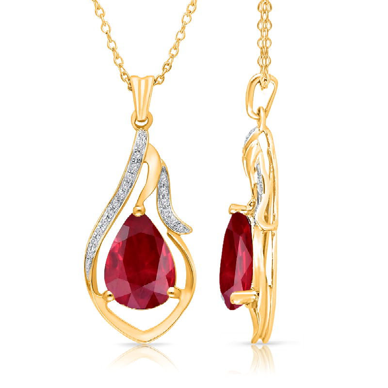 14K YELLOW GOLD RUBY & WHITE DIAMOND FASHION PENDANT