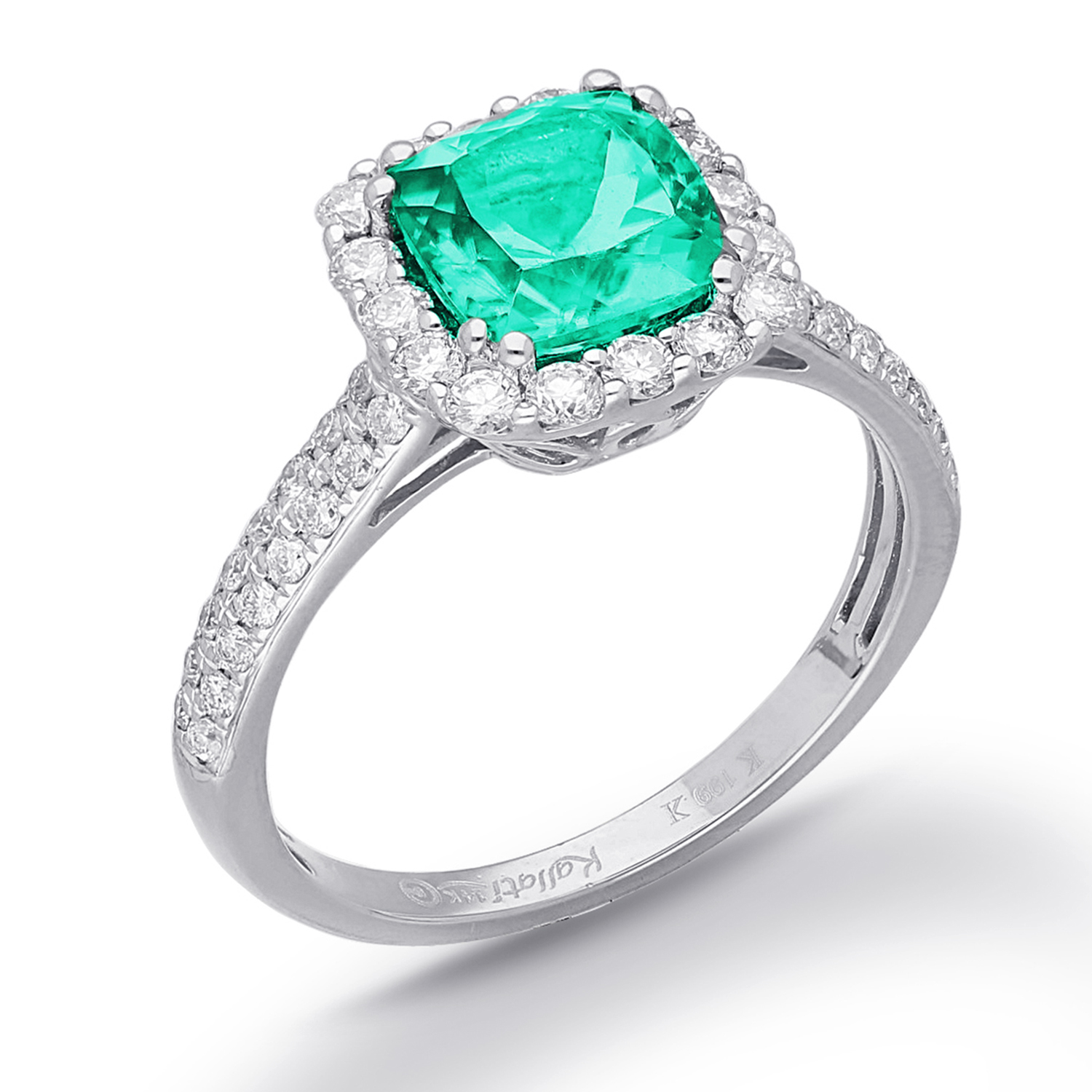 14K WHITE GOLD COLUMBIA EMERALD & WHITE