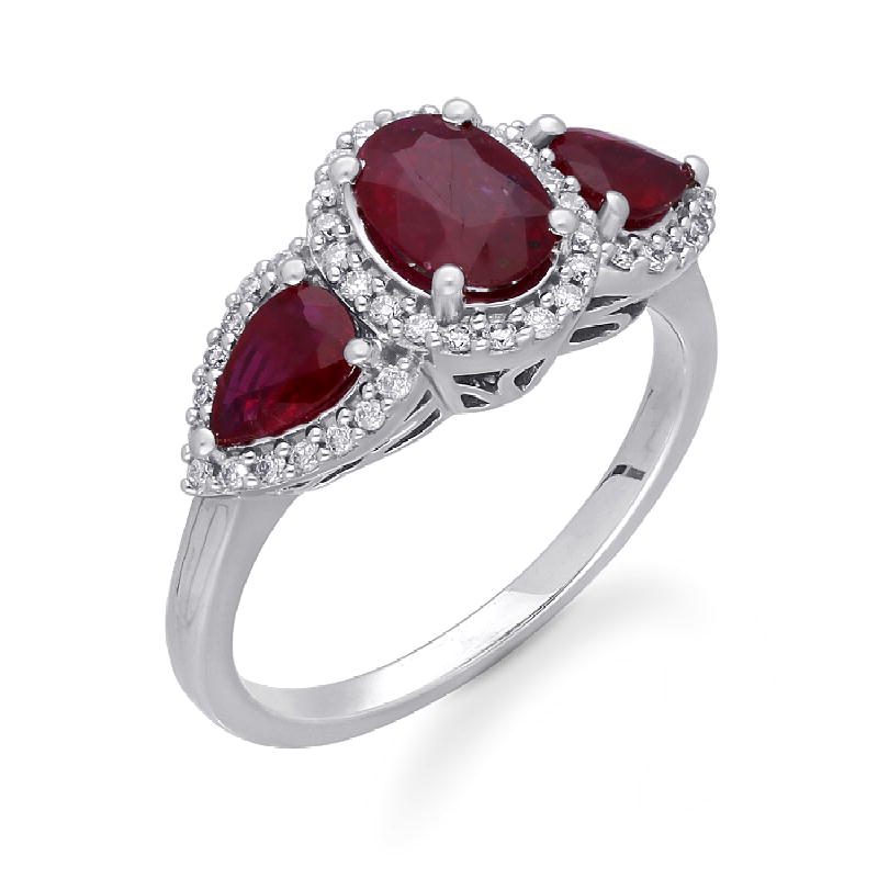 WHITE GOLD SI RUBY WHITE DIAMOND RING