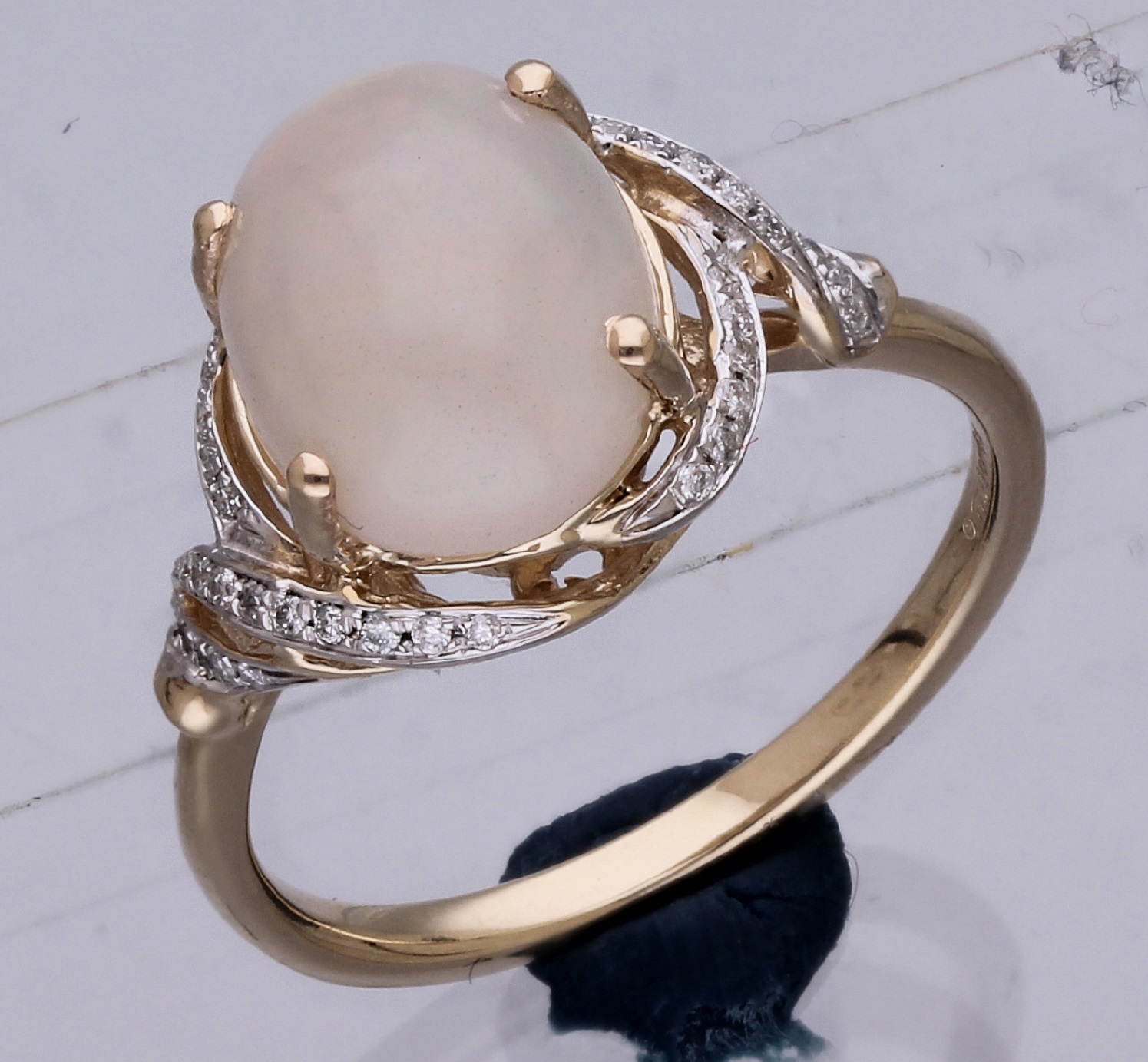 14K YELLOW GOLD OPAL & WHITE DIAMOND FASHION RING
