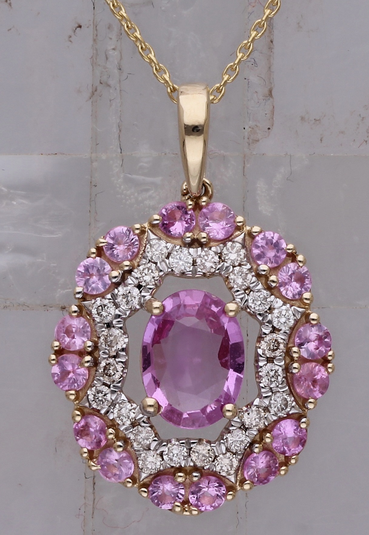 14K YELLOW GOLD PINK SAPPHIRE & MULTI SAPPHIRE WITH WHITE DIAMOND FASHION PENDANT