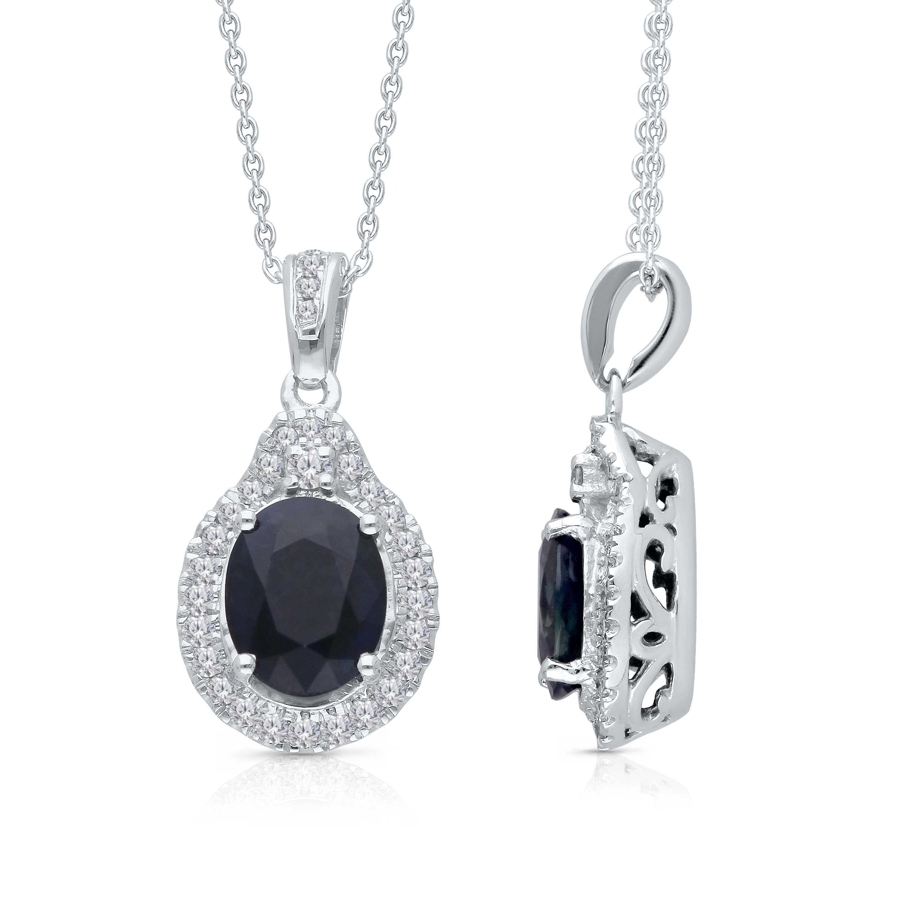 14K WHITE GOLD MULTI SAPPHIRE & WHITE DIAMOND FASHION PENDANT