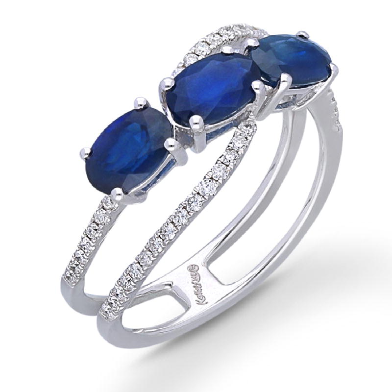 14K WHITE GOLD SAPPHIRE WITH WHITE DIAMOND FASHION RING