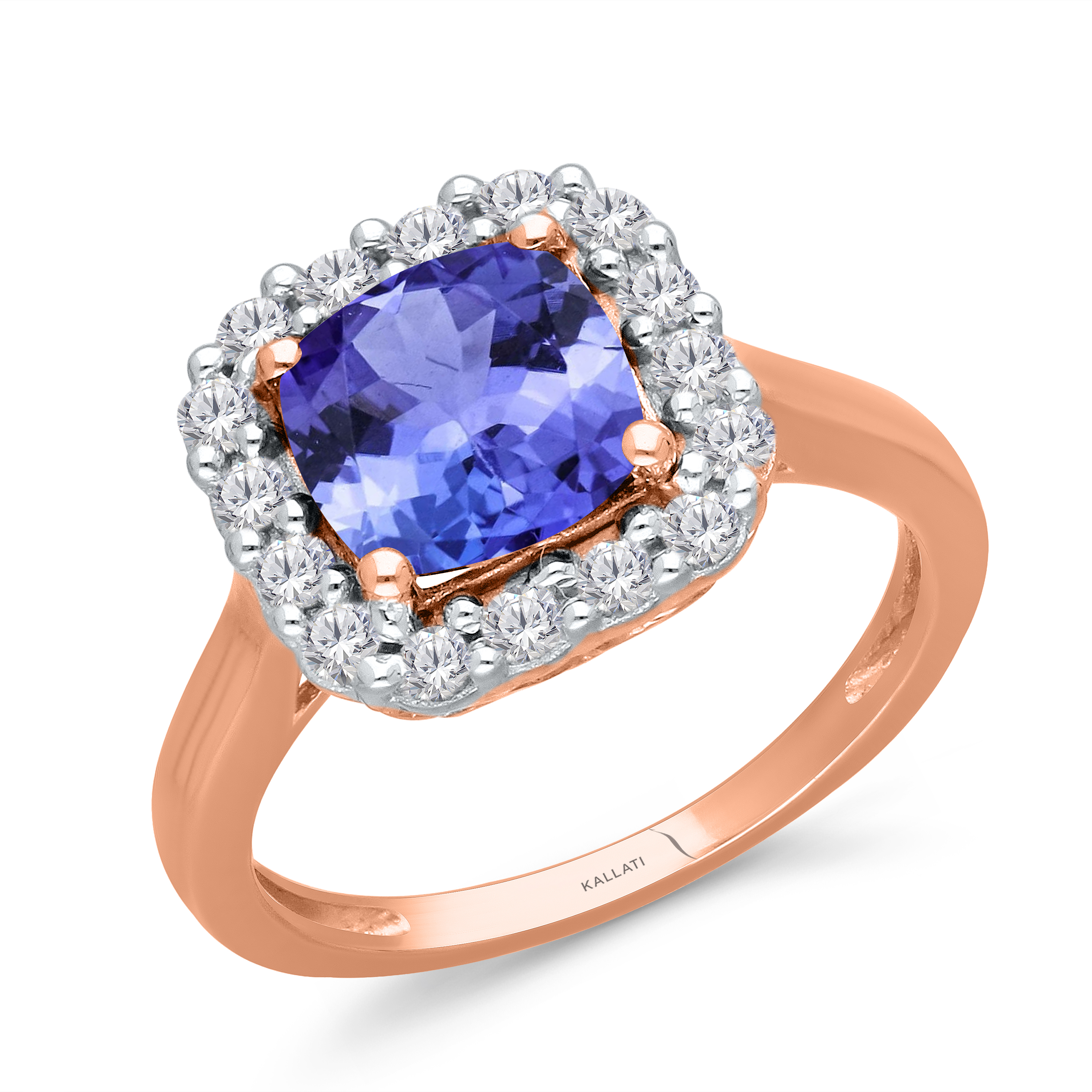 14K ROSE GOLD TANZANITE & WHITE DIAMOND FASHION RING