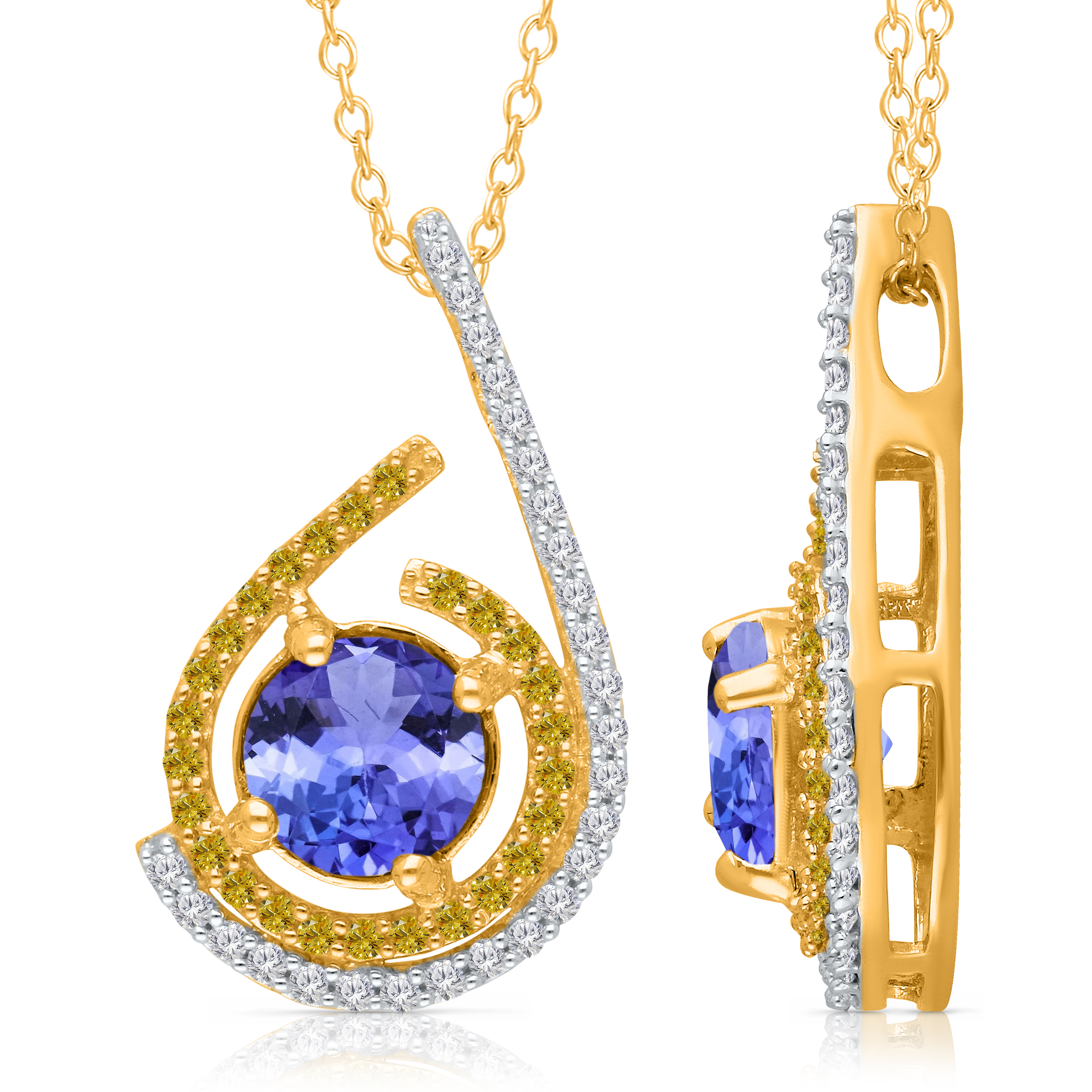 14K YELLOW GOLD TANZANITE WITH YELLOW FANCY & WHITE DIAMOND FASHION PENDANT