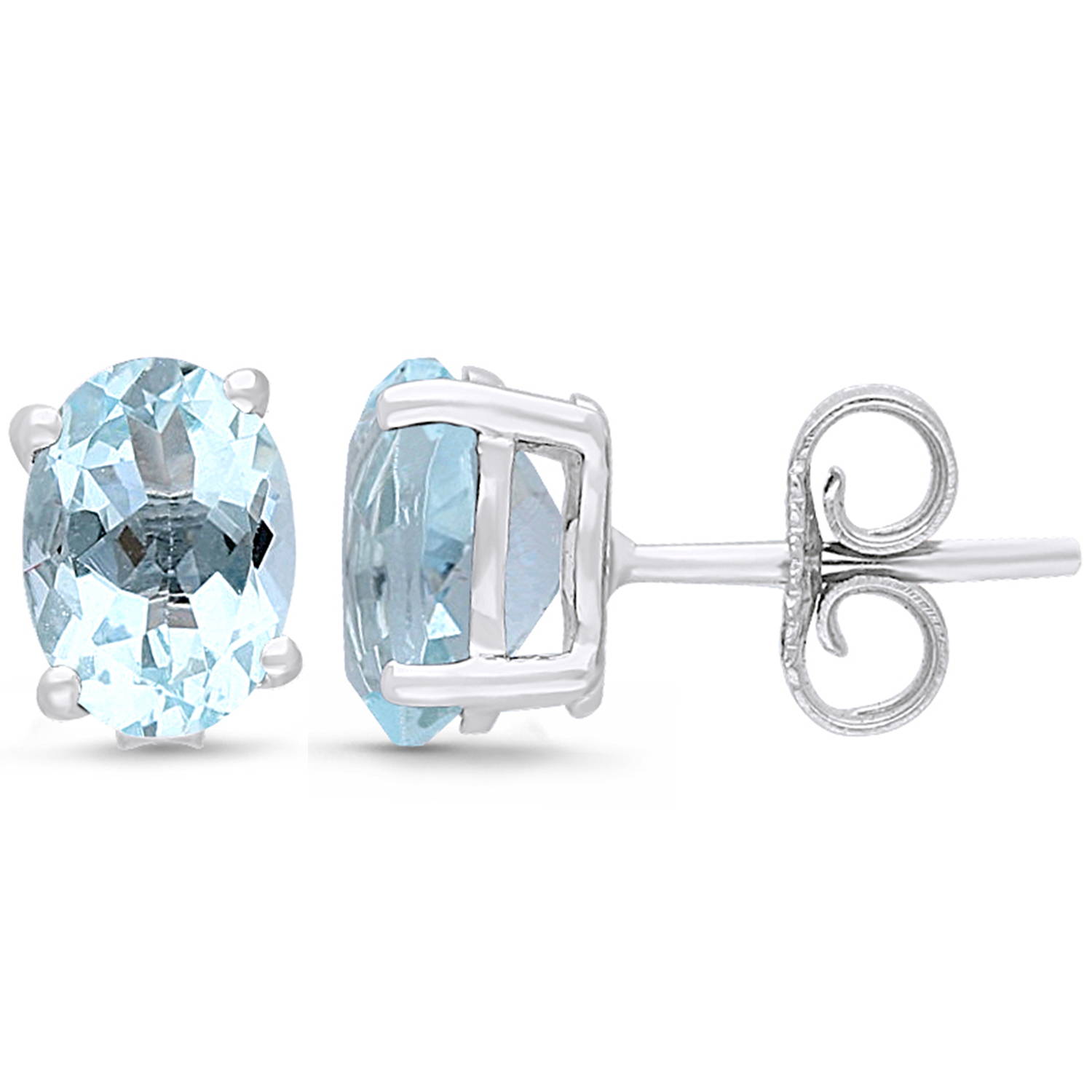 14K WHITE GOLD AQUA MARINE FASHION EARRI