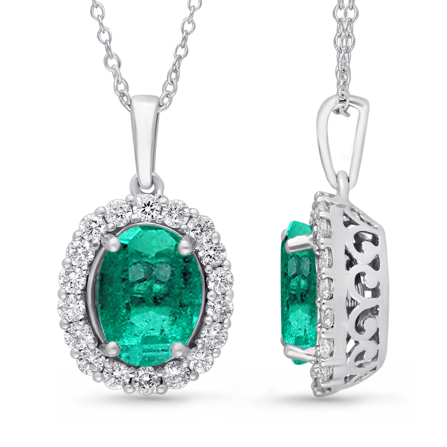 14K WHITE GOLD COLUMBIA EMERALD DIA PEND