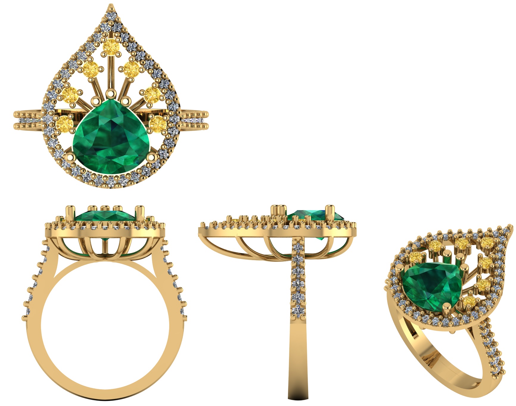14K YELLOW GOLD CSARITE & YELLOW FANCY WITH WHITE DIAMOND FASHION RING