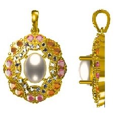 14K YELLOW GOLD OPAL & MULTI SAPPHIRE WITH WHITE DIAMOND FASHION PENDANT