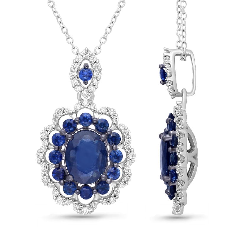 14K WHITE GOLD SAPPHIRE & WHITE DIAMOND