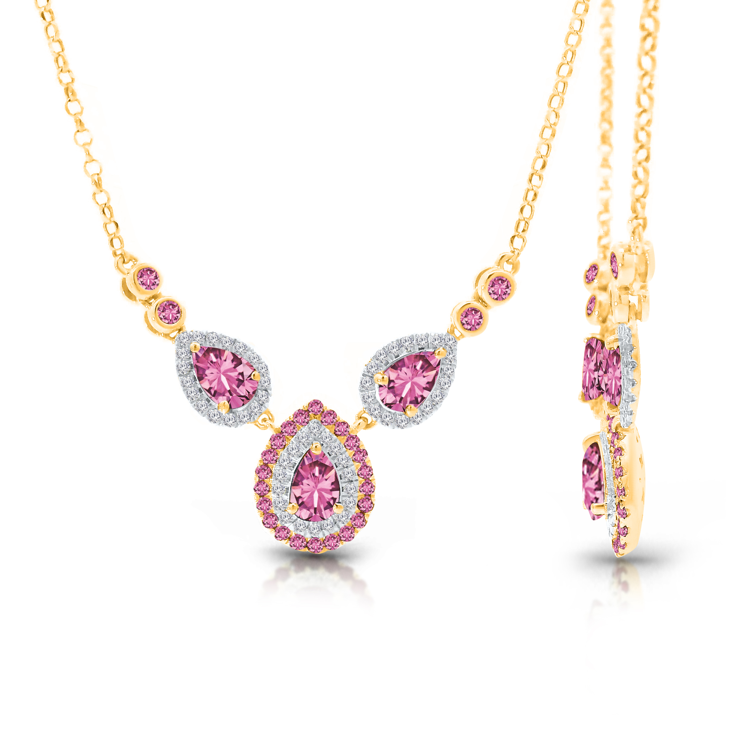 14K YELLOW GOLD SAPPHIRE WITH WHITE DIAMOND FASHION NECKLACE