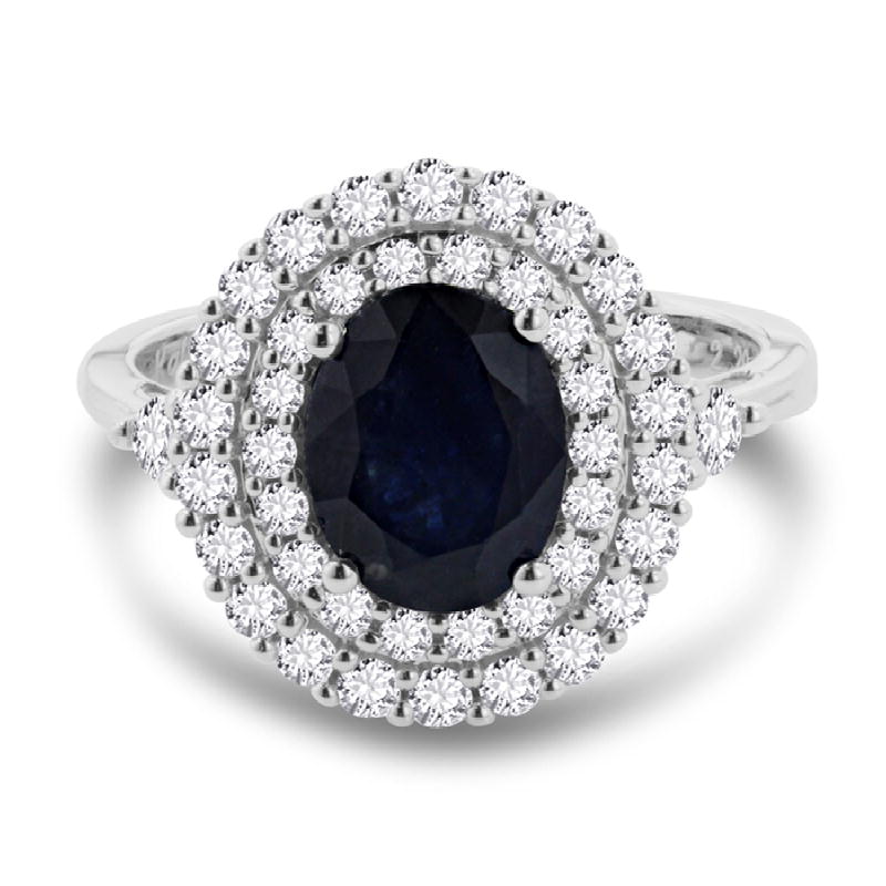 WHITE GOLD SI OVEL SAPPHIRE DIAMOND RING