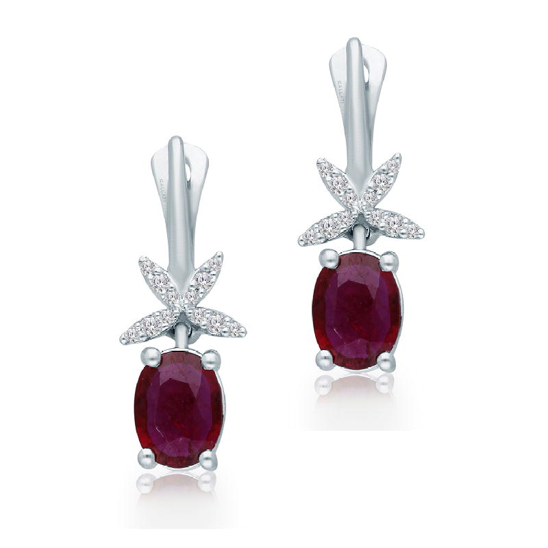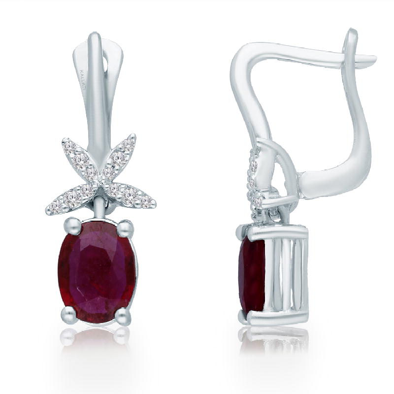 14K WHITE GOLD RUBY & WHITE DIAMOND EARR