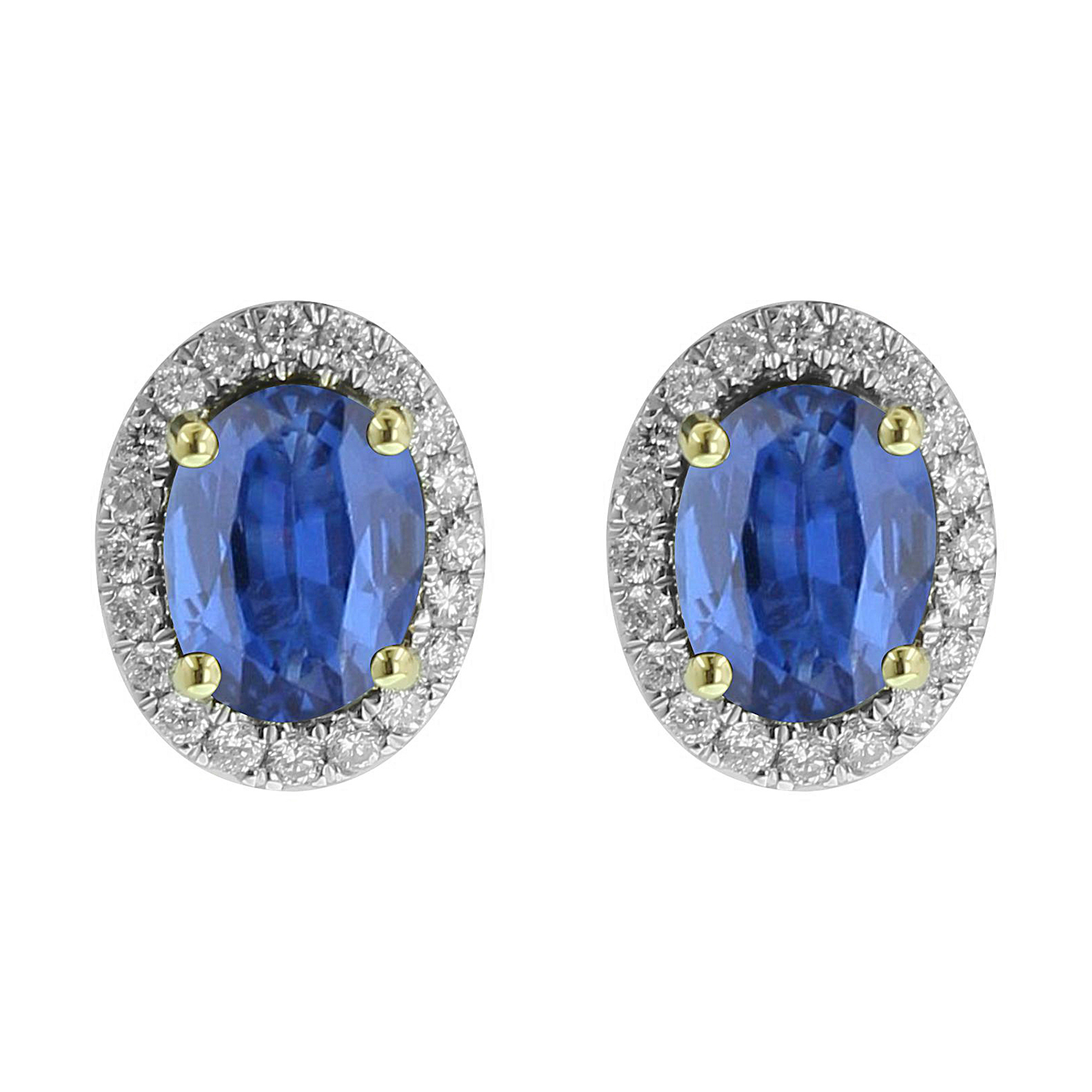 14K YELLOW GOLD TEAL SAPPHIRE WITH WHITE DIAMOND FASHION EARRING