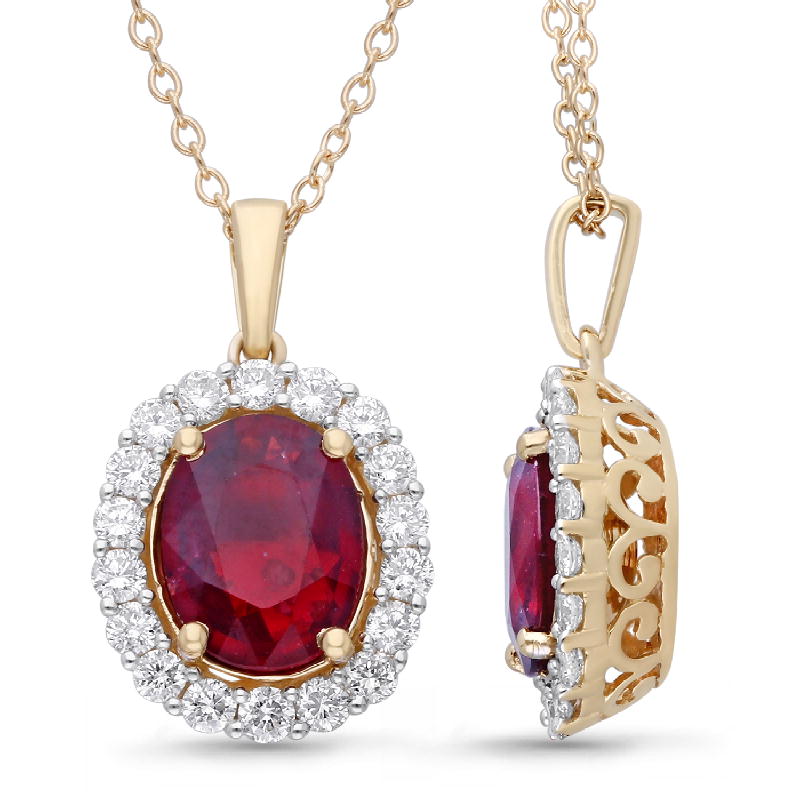 14K YELLOW GOLD GIA RUBY & WHITE DIAMOND