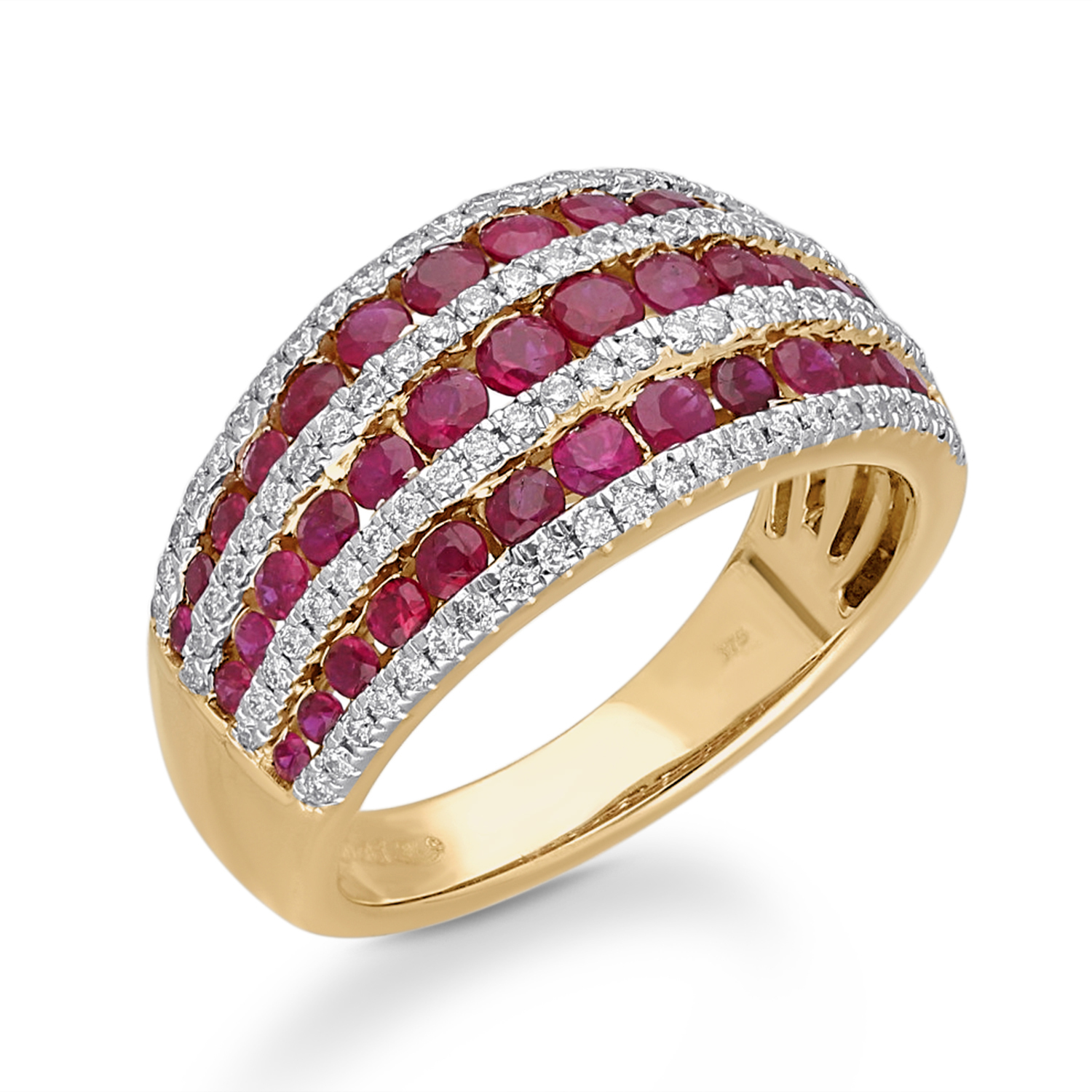 YELLOW GOLD RUBY WHITE DIAMOND RING
