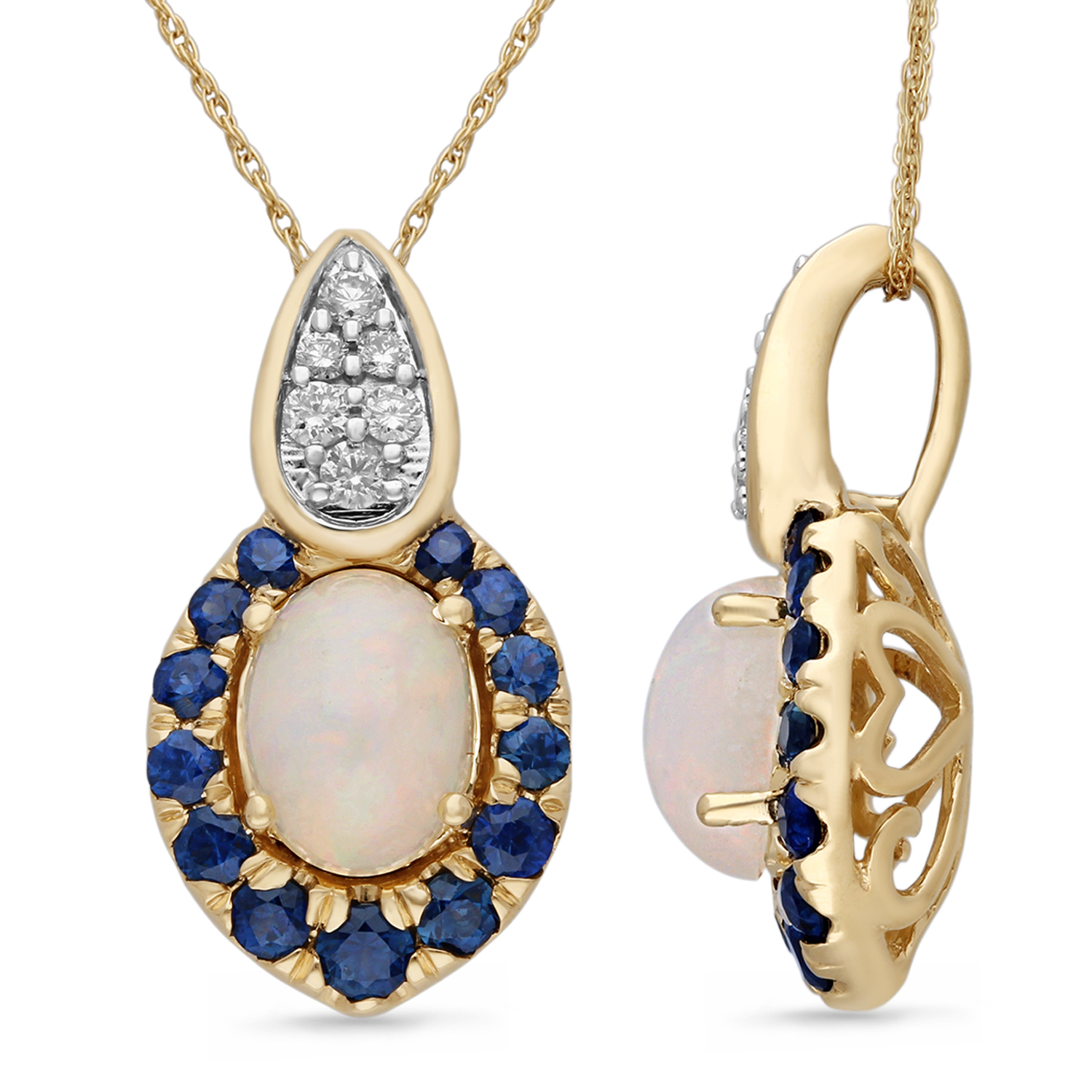 14K YELLOW GOLD OPAL & SAPPHIRE DIAMOND FASHION PENDANT