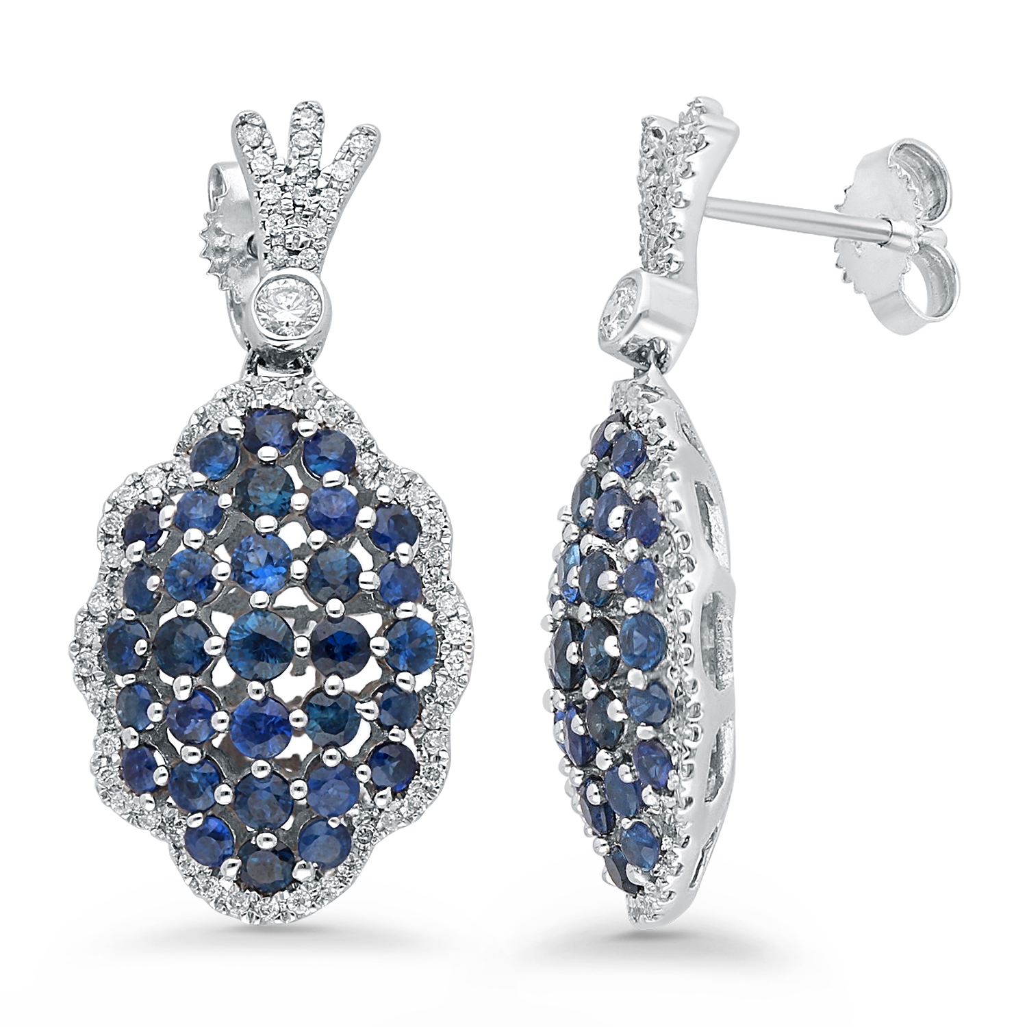 14K WHITE GOLD SAPPHIRE DIAMOND EARRING