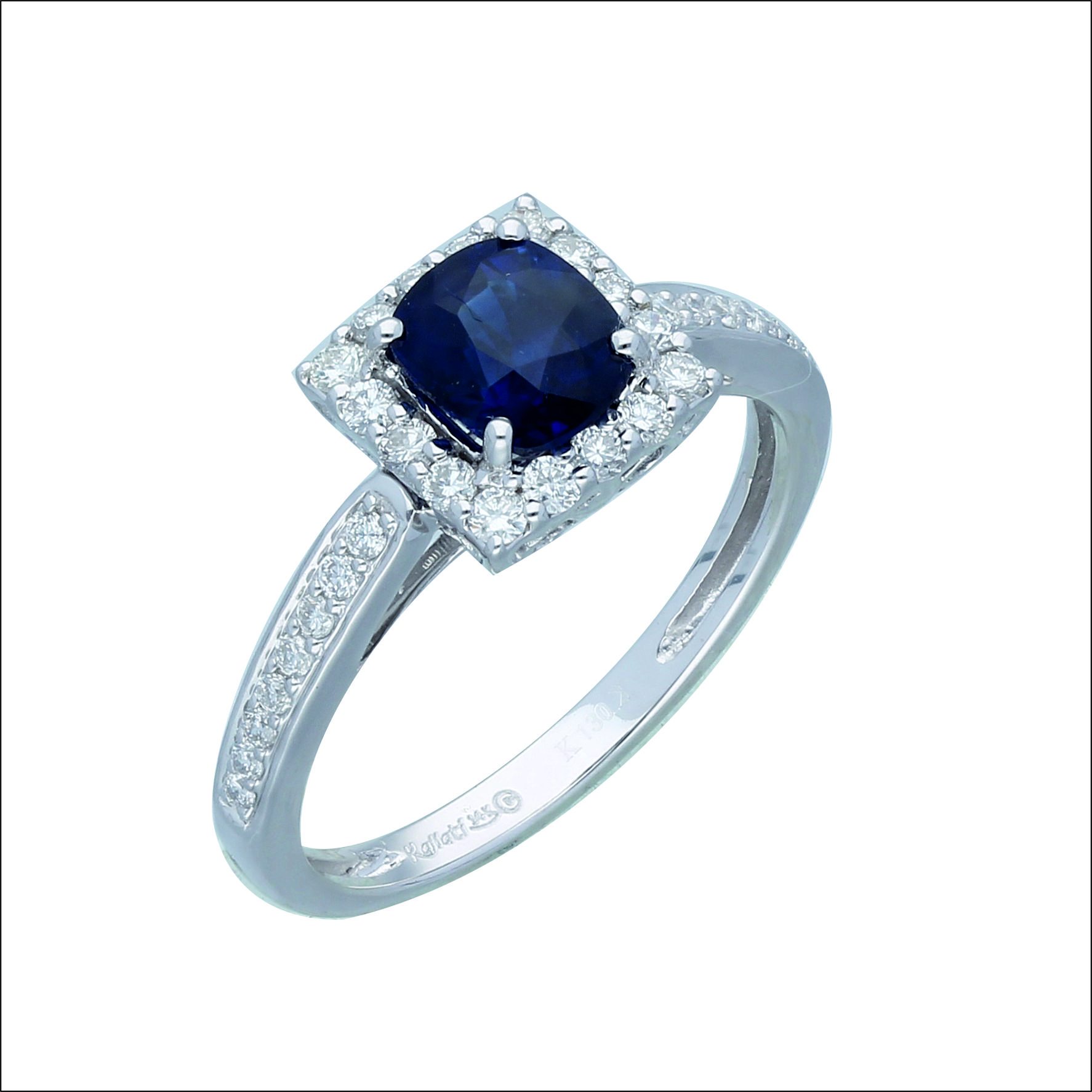 14K WHITE GOLD SI CEYLON SAPPHIRE DIA RI