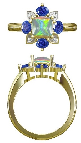 14K YELLOW GOLD OPAL TANZANITE AND WHITE DIAMOND FASHION RING