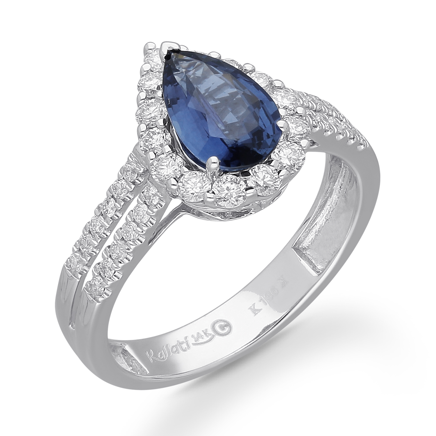 14K WHITE GOLD CEYLON SAPPHIRE & WHITE D