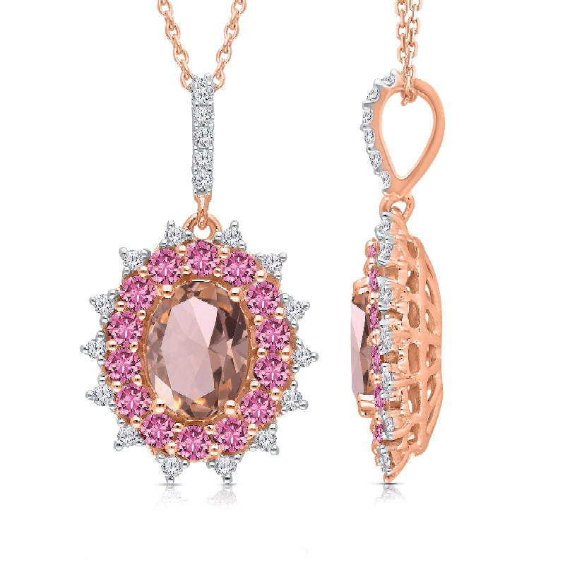 14K ROSE GOLD MORGANITE & PINK SAPPHIRE WITH WHITE DIAMOND PENDANY DIAMOND R