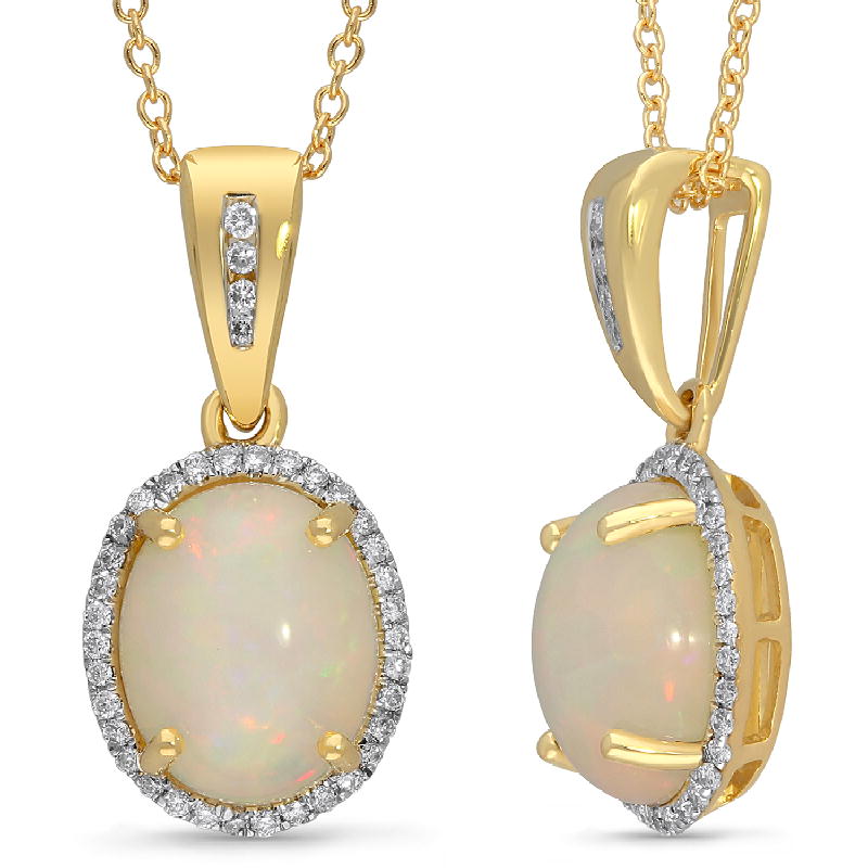 14KT YELLOW GOLD OPAL AND DIAMOND FASHIO