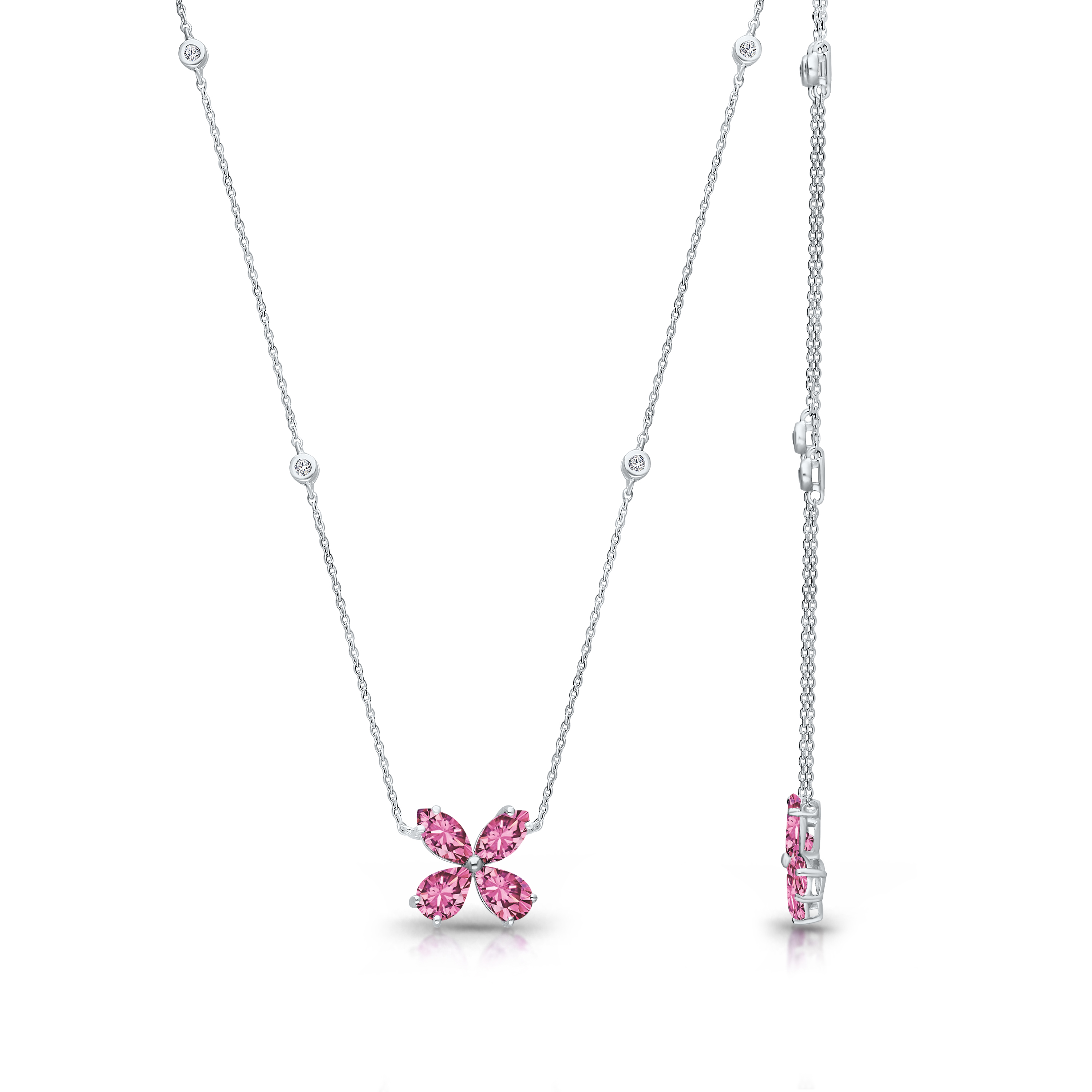 14K WHITE GOLD MULTI SAPPHIRE & WHITE DIAMOND FASHION NECKLACE