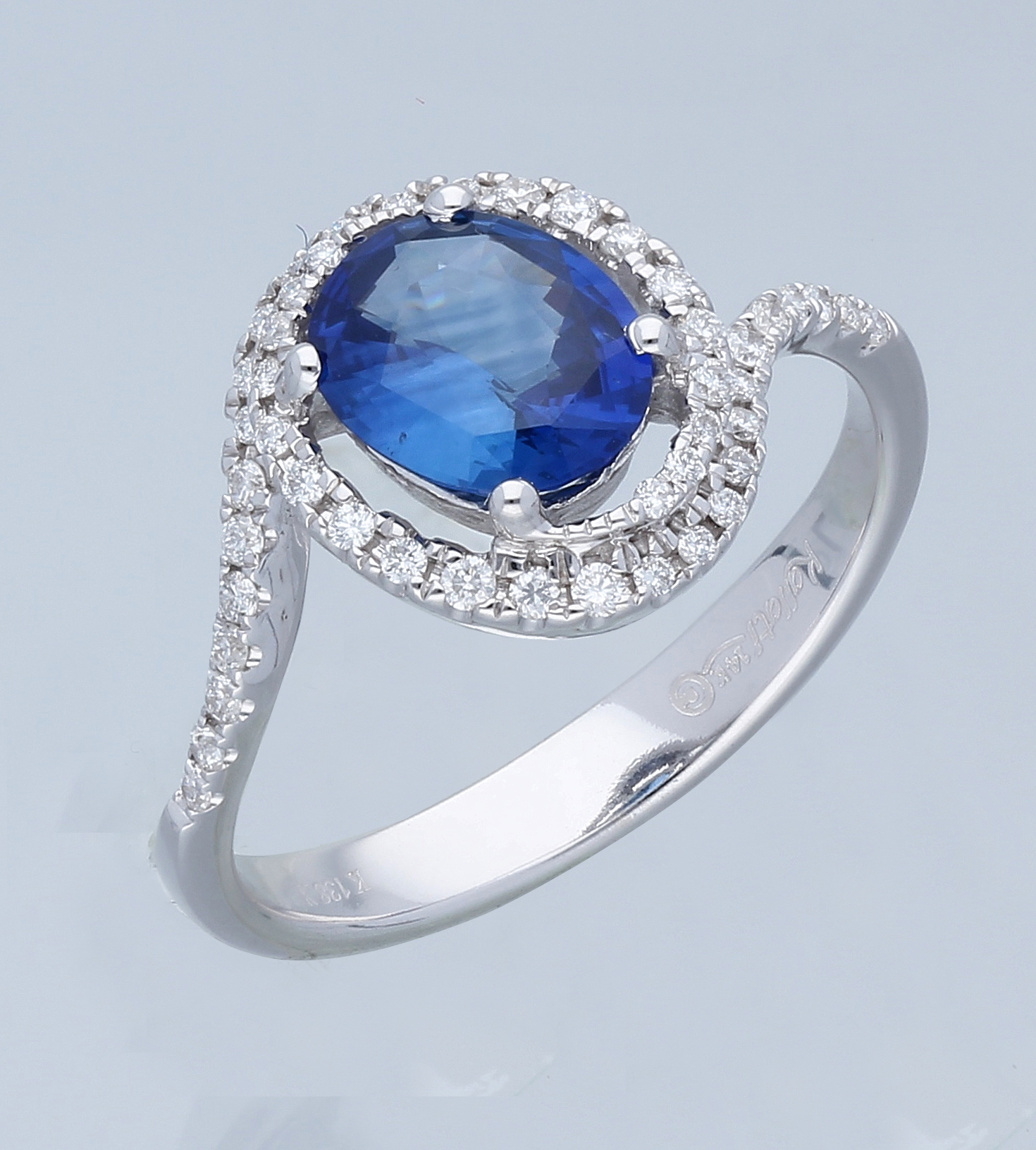 14K WHITE GOLD SI CEYLON SAPPHIRE DIA RI