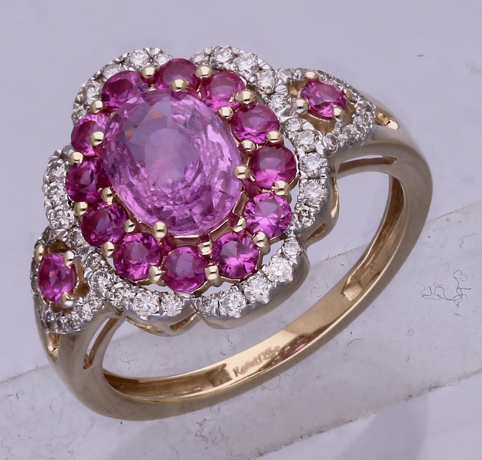14K YELLOW GOLD PINK SAPPHIRE AND WHITE DIAMOND FASHION RING