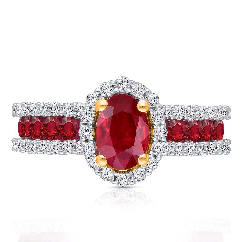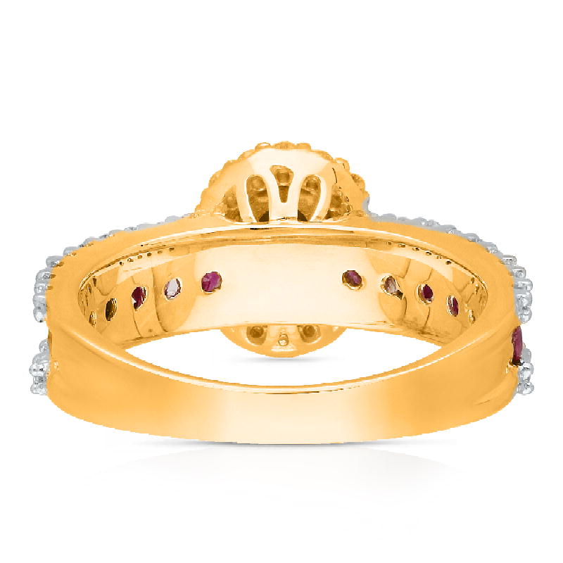 14K YELLOW GOLD RUBY & WHITE DIAMOND