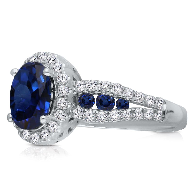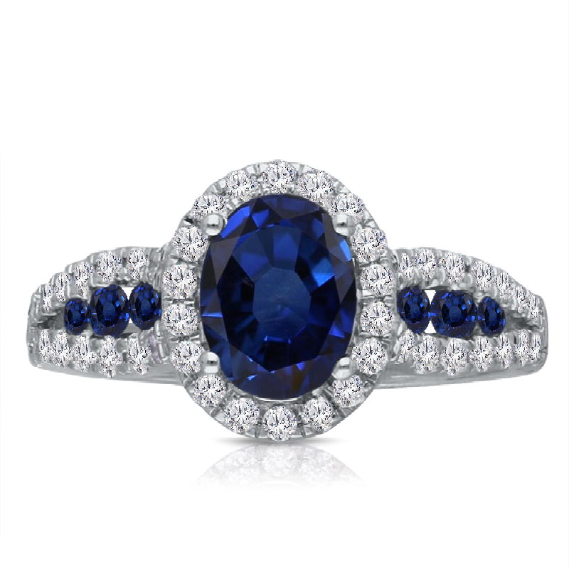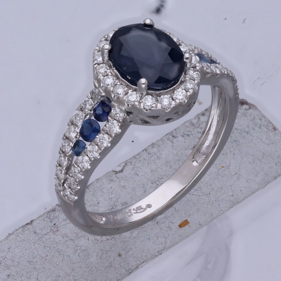 14K WHITE GOLD SAPPHIRE & WHITE DIAMOND FASHION RING