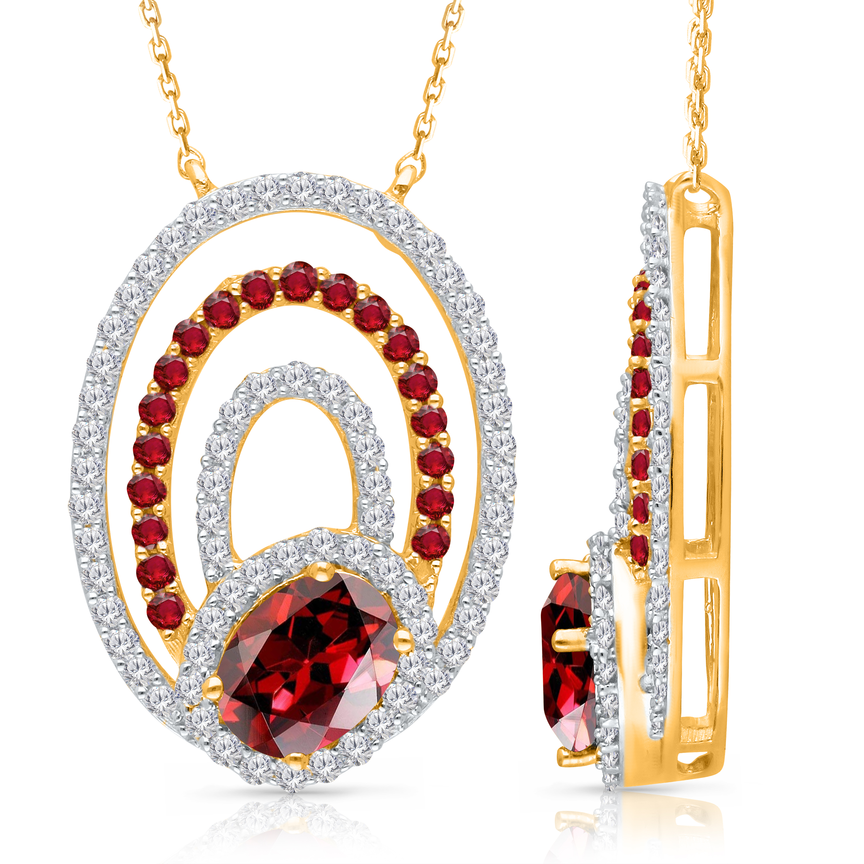14K YELLOW GOLD RUBY & WHITE DIAMOND FASHION PENDANT