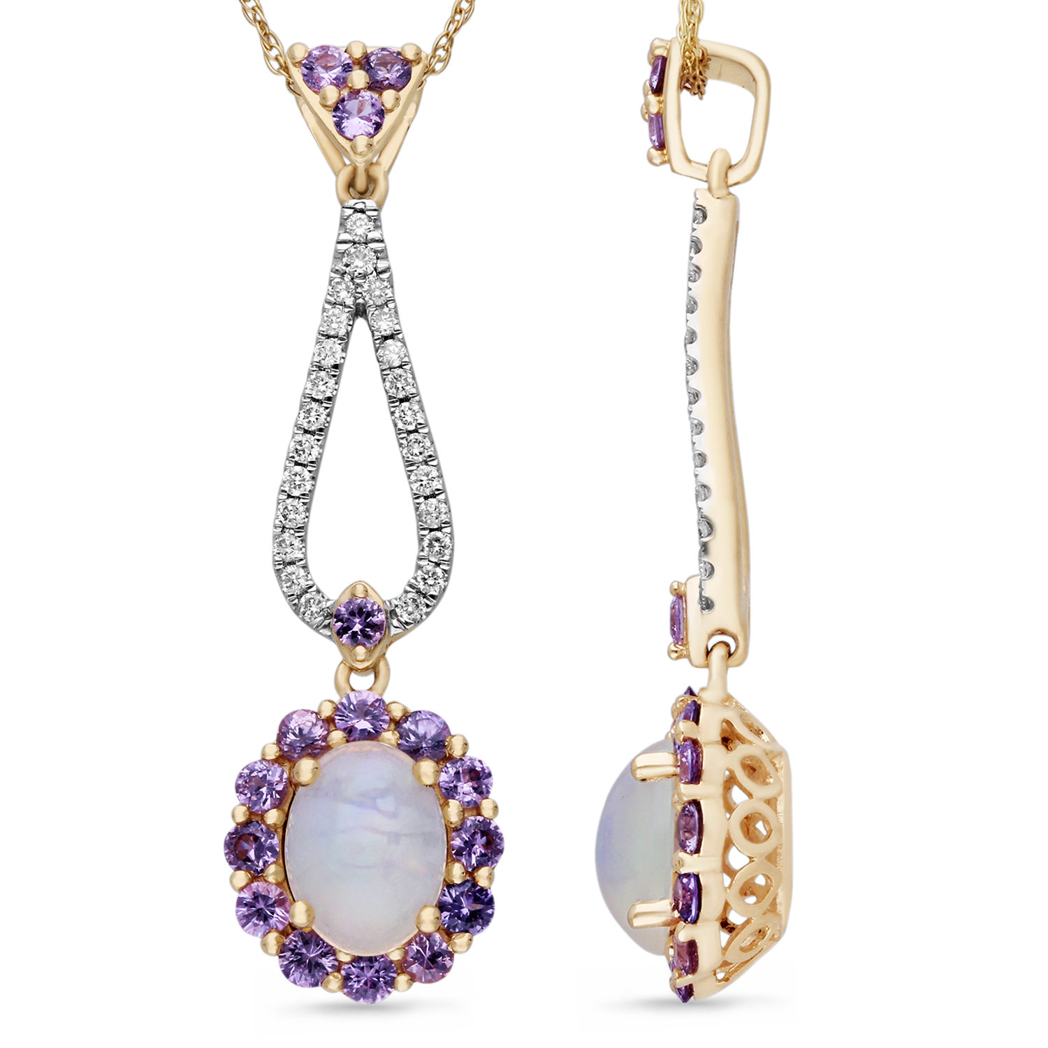 14KYELLOW GOLD MULTI COLOUR SAPPHIRE & OPAL DIAMOND FASHION PENDANT