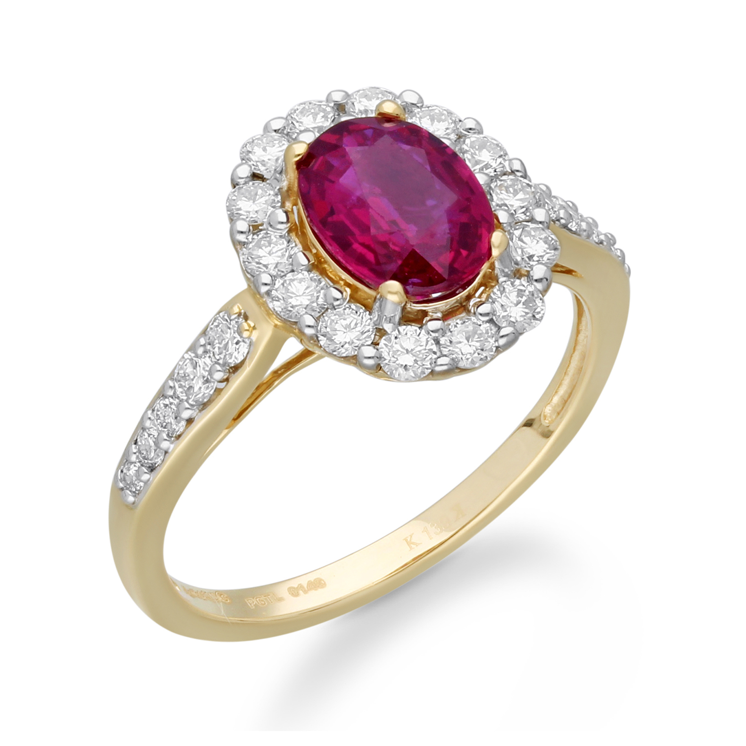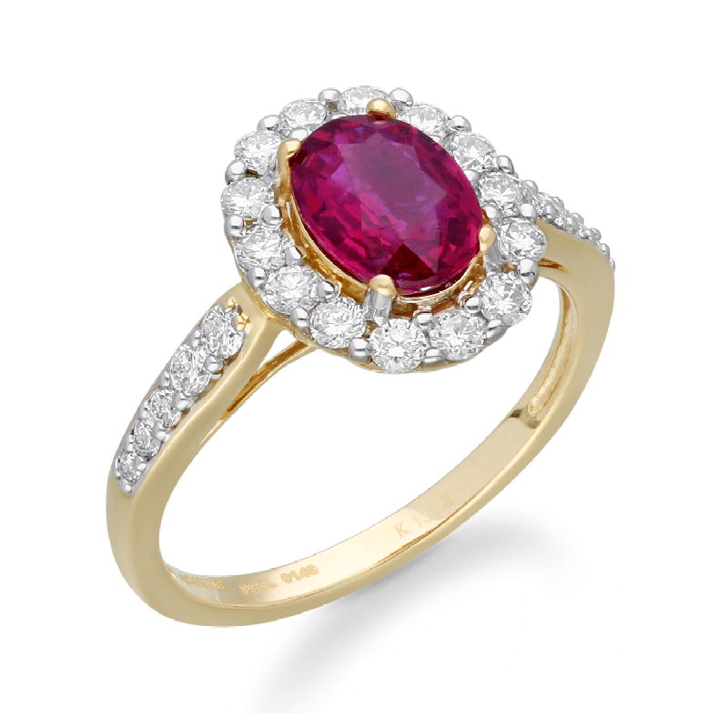 14K YELLOW GOLD RUBY & WHITE DIAMOND RIN